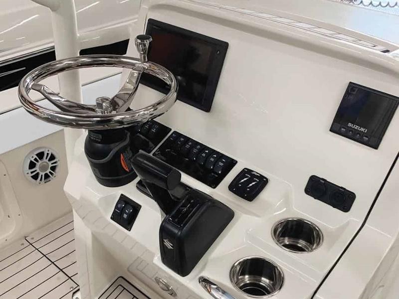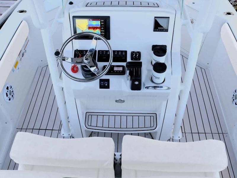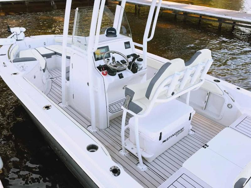 The combination of a powerful Mercury four stroke motor, durable fiberglass hull construction (featuring exclusive Z-Plane technology), and an extensive list of comfort and fishing amenities makes this model highly desirable. This versatile Stingray center console boat is ready to take you on your next adventure.