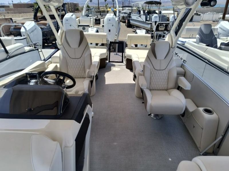 [read more]Experience unparalleled luxury on the water with this newly arrived 25 FT boat, the stunning Tahoe Pontoons Cascade Platinum Quad Lounge Shift. This exceptional pontoon is built for ultimate leisure and performance, making it the perfect choice for your next outing in Lake Havasu or any major body of water.
