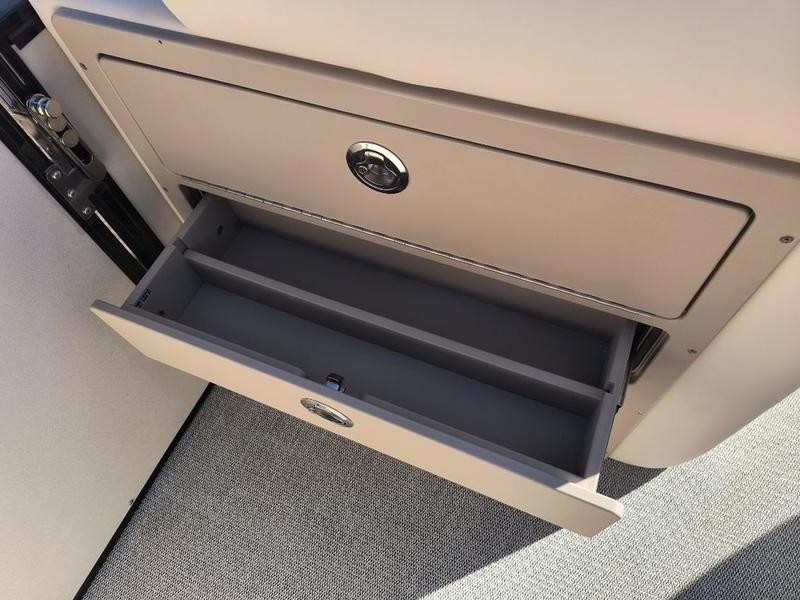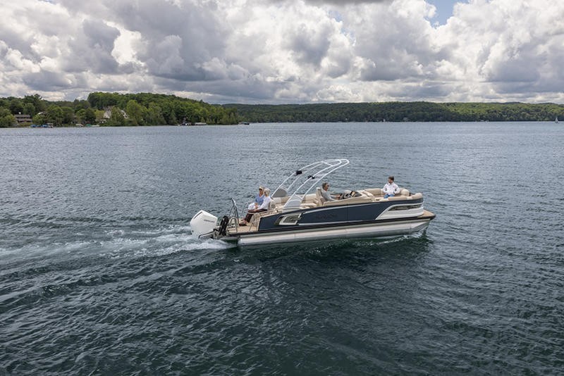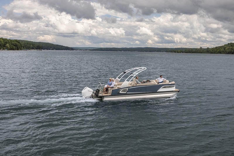 At the heart of this 25 ft luxury pontoon is robust power paired with advanced stability. The vessel features a powerful Mercury Verado 425 HP V10 engine, ensuring smooth handling across various waters. Stability comes from its signature Waveglider triple 27” pontoons, which include high-performance lifting fins and aluminum waveshields for superior ride quality.