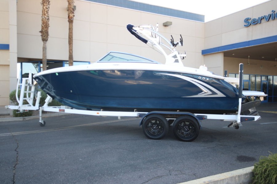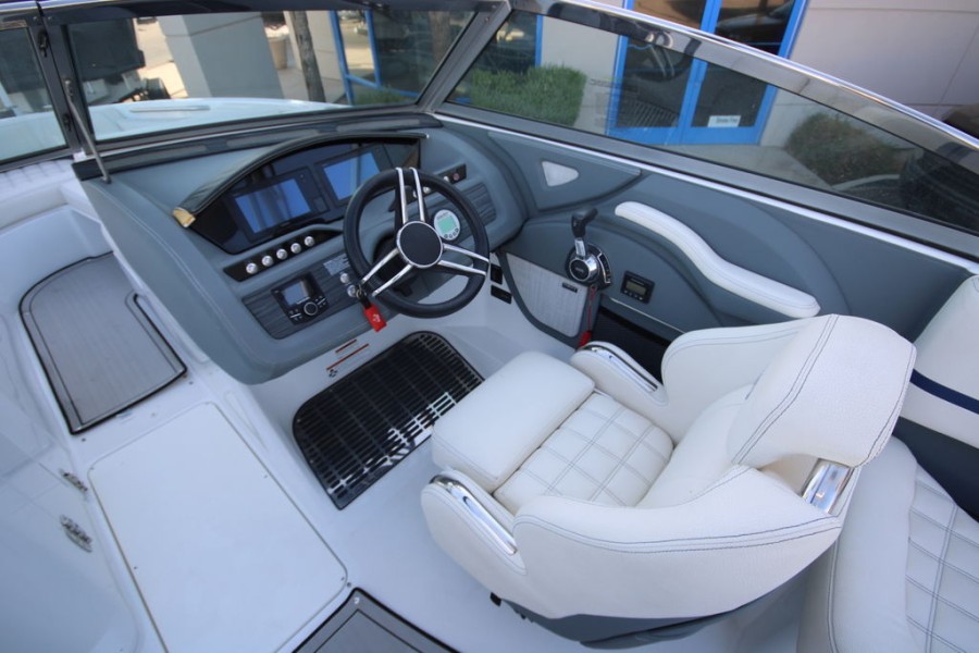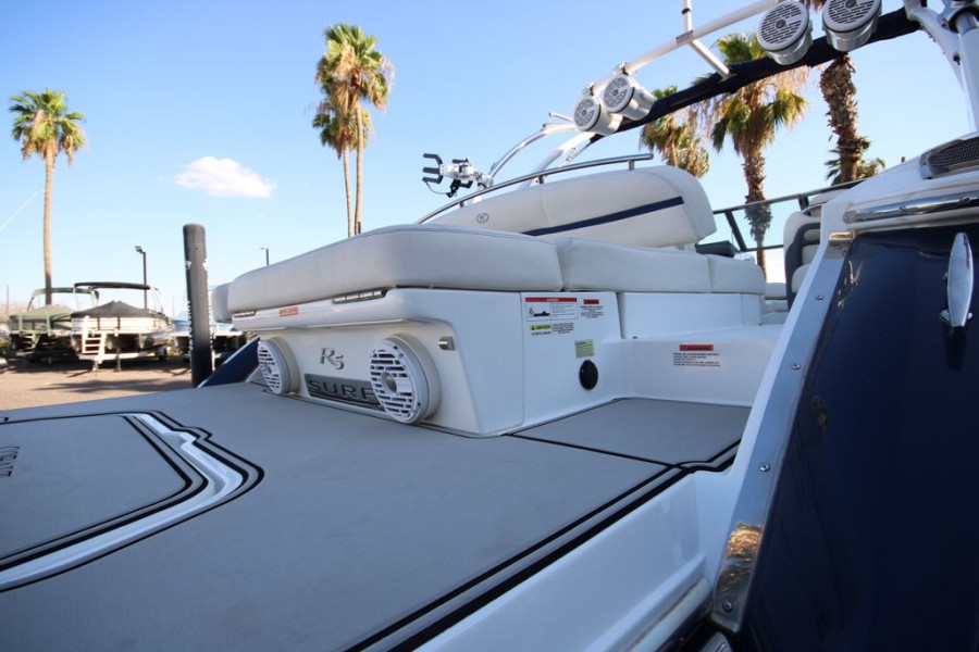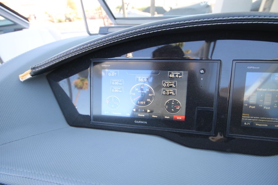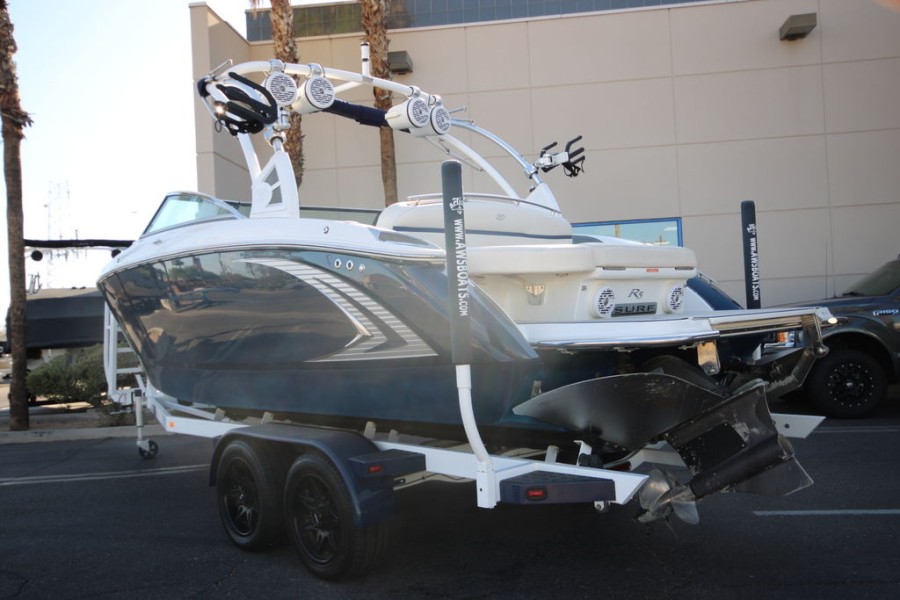 The R5 Surf is powered by a Volvo Penta 350 HP V8 engine, delivering smooth acceleration and powerful thrust. A single‑axis surf tab system ensures precise handling, while the Kevlar‑reinforced hull adds durability without sacrificing speed.