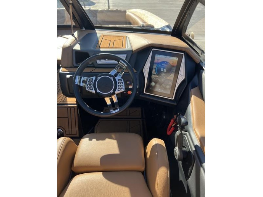 The Tige CLEAR display, positioned beside the steering wheel, offers an 11‑inch touchscreen interface that delivers crystal clear visibility and easy access to all onboard features. It is standard on every 2021 model.