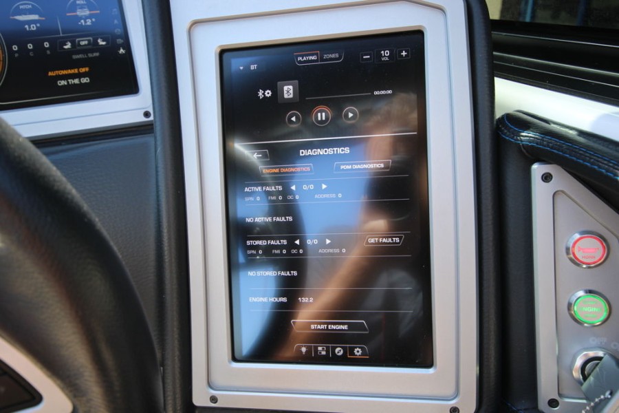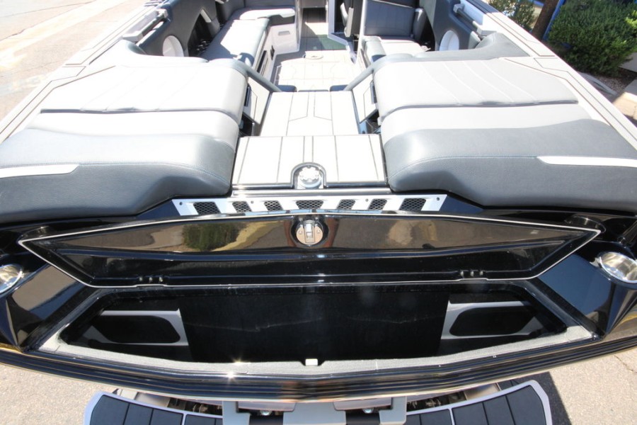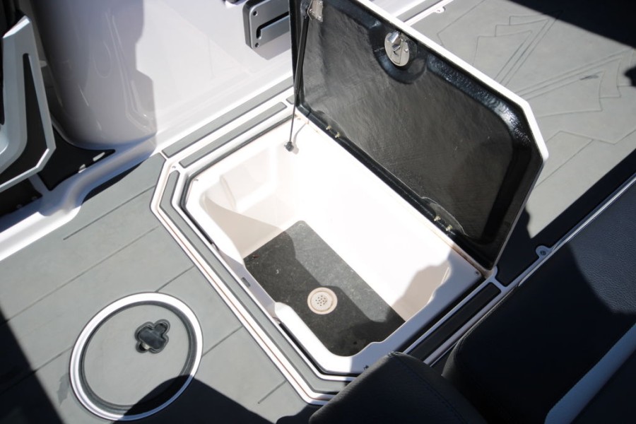 The SE575 features wireless phone charging and Bluetooth audio controls at both the swim deck and passenger seat. RGB lighting accents, heated power seats, and a standard FxONE Power Folding Tower give you seamless access to all onboard functions with intuitive touch‑screen interfaces.