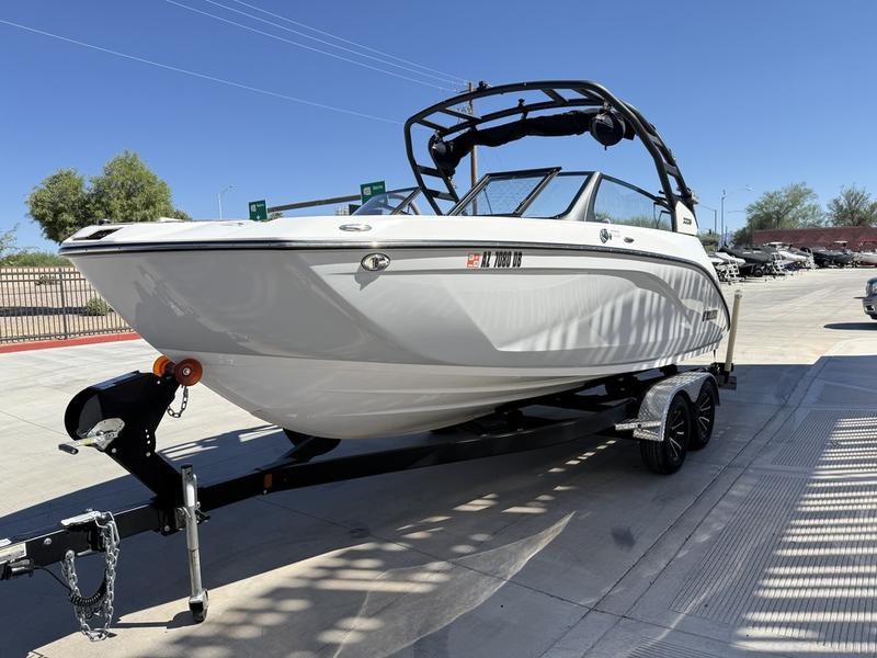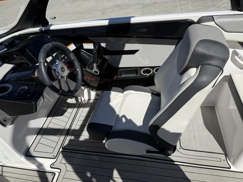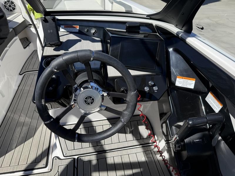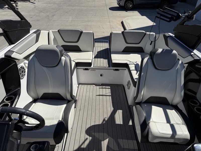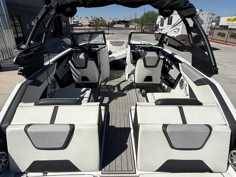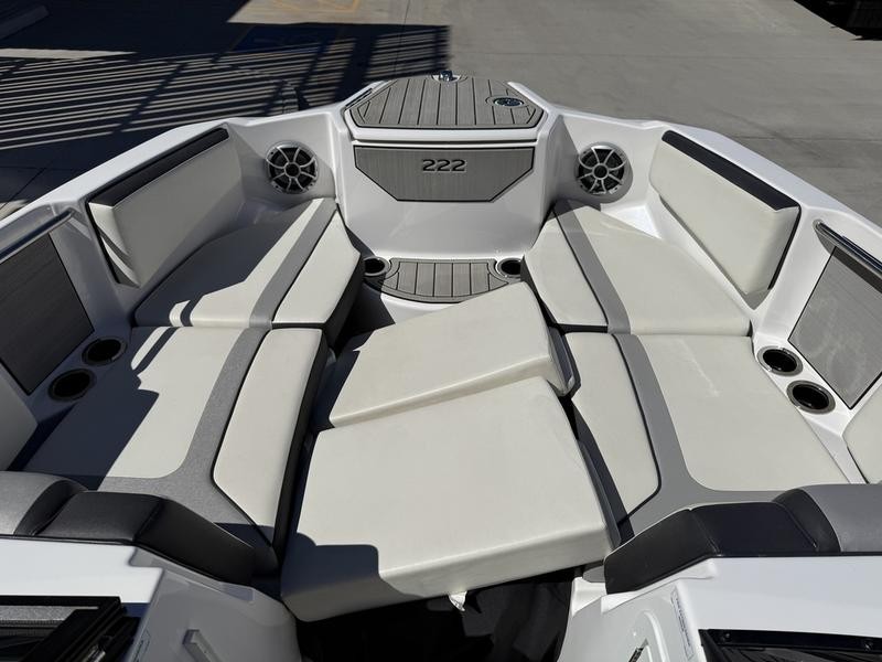 The 222S includes advanced technology such as Bluetooth connectivity, USB/AUX input, 12V outlets, and a stereo remote with onboard speakers. A “No Wake Mode” control provides smooth cruising for calm waters or thrilling wakeboarding sessions.
