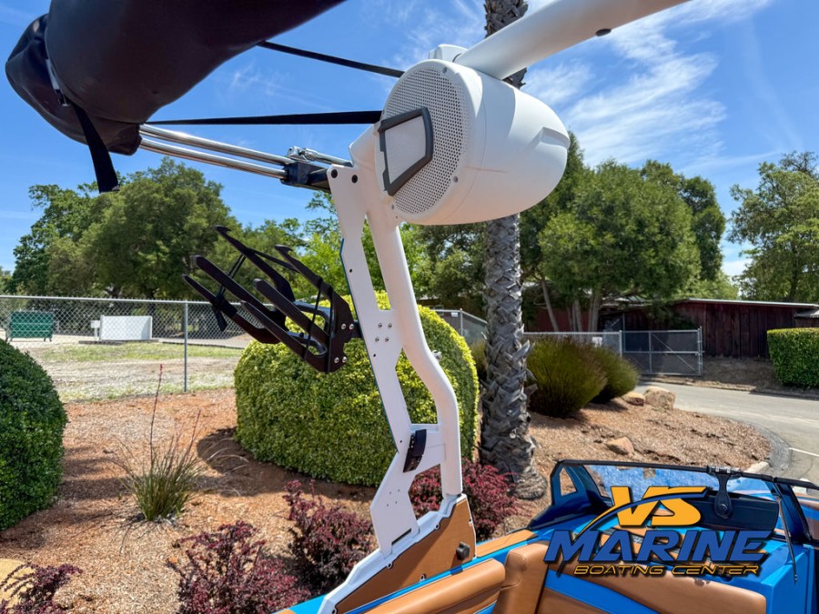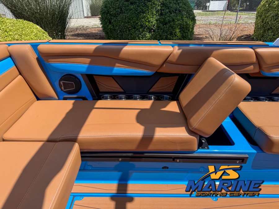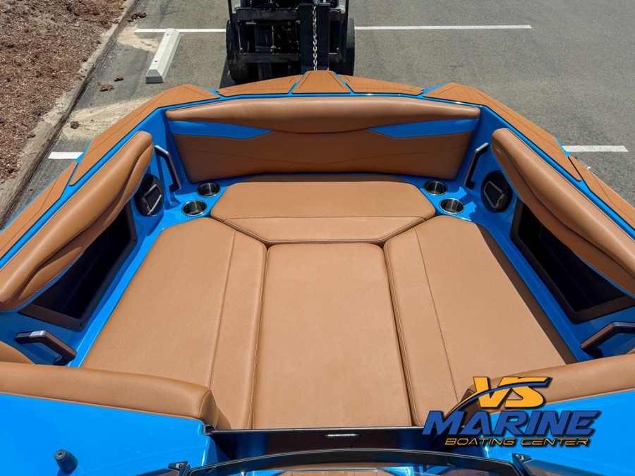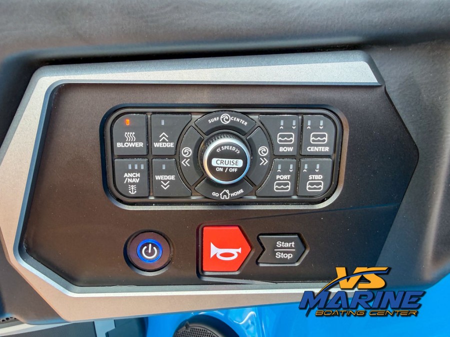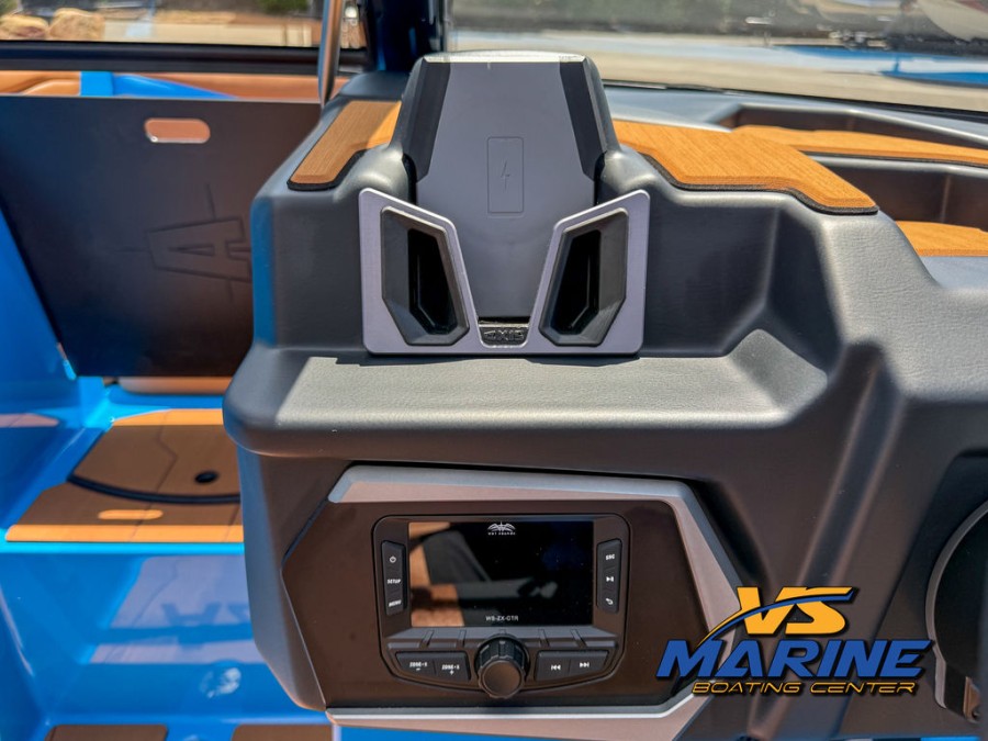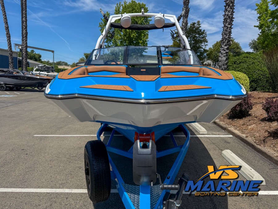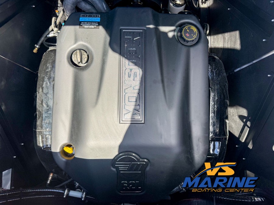 Powering the magnificent A245 boat is a powerful MONSOON M6Di engine setup. Providing substantial horsepower at 430 HP, this gas-powered system ensures reliable propulsion via its V-Drive mechanism. The combination of high power output and efficient V-drive capability makes maneuvering both thrilling wake sessions and casual cruising effortless.