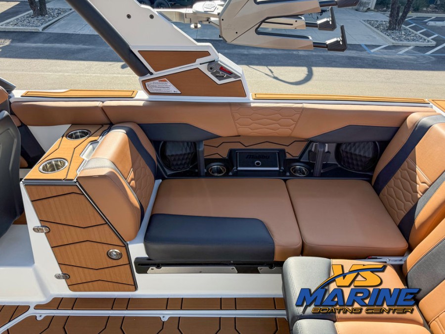 The Malibu Boats 24 MXZ is built to impress. Featuring a striking color combination of ARCTIC WHITE / EBONY GOLD METALLIC / MACHINE SILVER METALLIC, this boat doesn't just float—it makes a statement. Whether you are cruising the coastal waters or enjoying day trips on inland lakes, the quality and craftsmanship inherent in every detail set these Malibu Boats apart.
