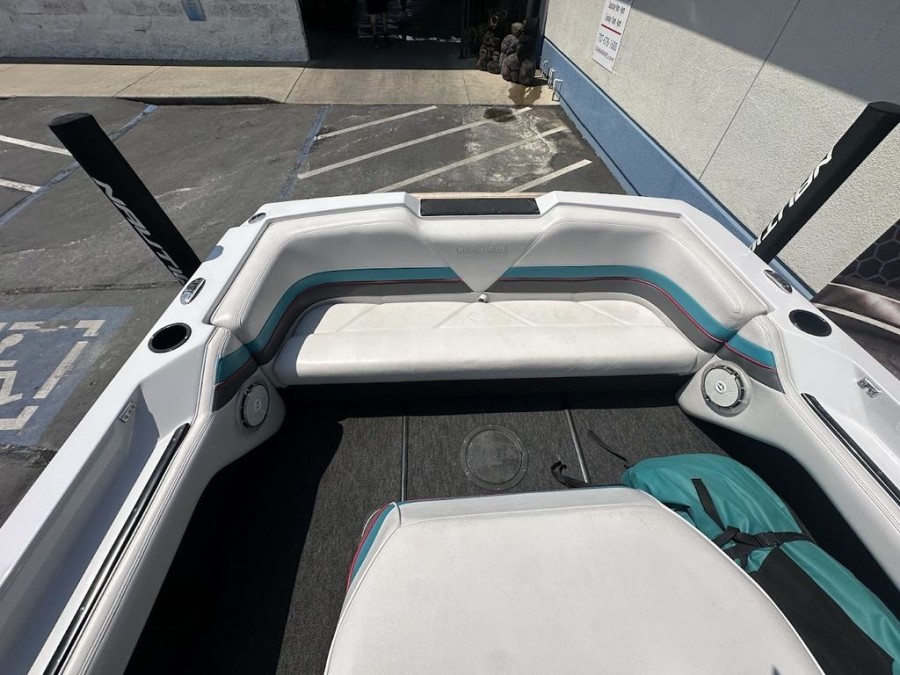 This ski boat excels in precision tracking, offers soft wakes for a comfortable ride, and provides agile handling that has made it a favorite among slalom skiers and barefooters alike. With its low profile design and powerful direct‑drive system, the Ski Nautique is built to deliver serious performance on any lake or river.