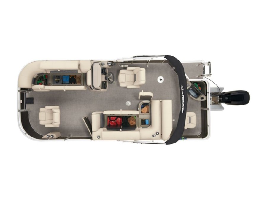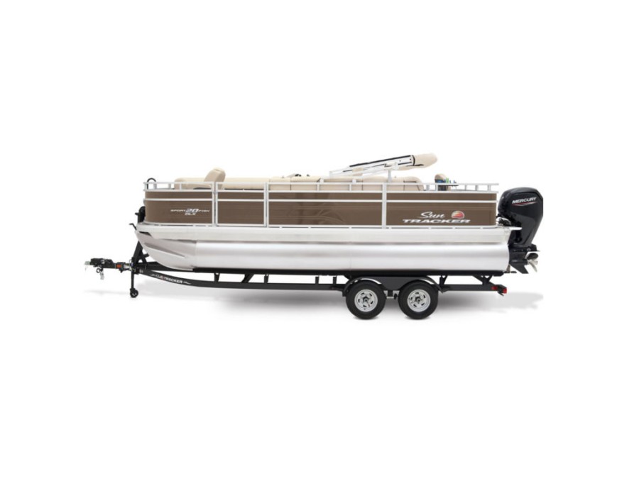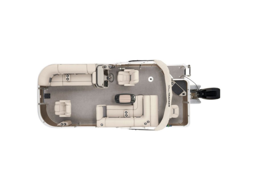 The 20 DLX comes standard with a 60hp Mercury ELPT FourStroke outboard motor; it is rated for up to 90hp. The pontoon logs are high‑buoyancy, multichambered aluminum units that ensure stability and smooth sailing in any water condition.