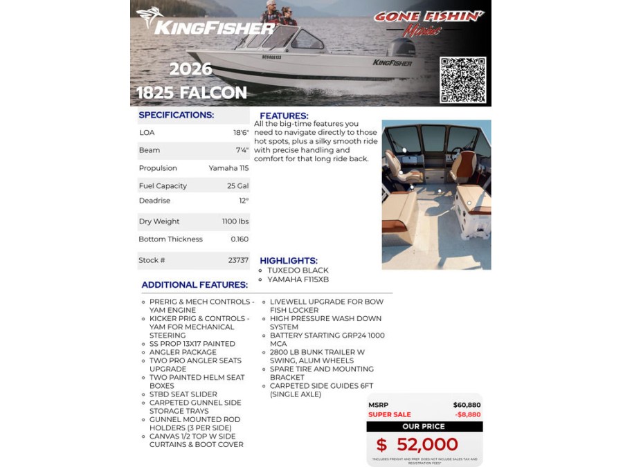 The KingFisher 1825 Falcon is more than just an aluminum fishing boat; it's a platform built for excellence. Its combination of aggressive performance features, luxurious comfort amenities, and reliable systems makes this model the premier choice for serious offshore anglers seeking unmatched quality in their next vessel.