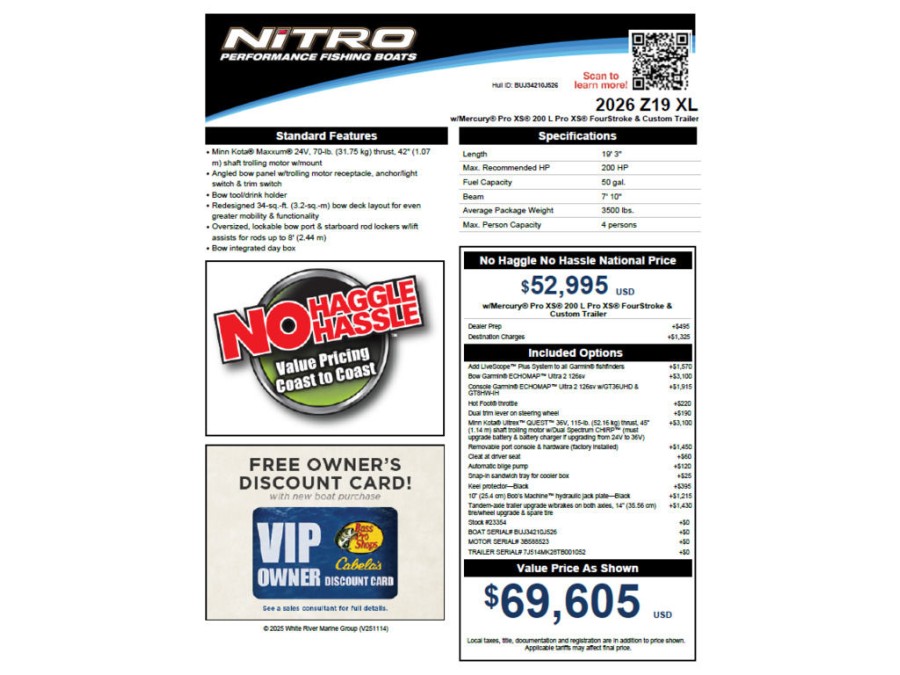 [read more]Introducing the 2026 Nitro Z19 XL – a fresh entry in the Nitro lineup that bridges the gap between compact models and larger workhorses. Designed with anglers in mind, this bass boat offers balanced performance for both casual outings and competitive fishing.