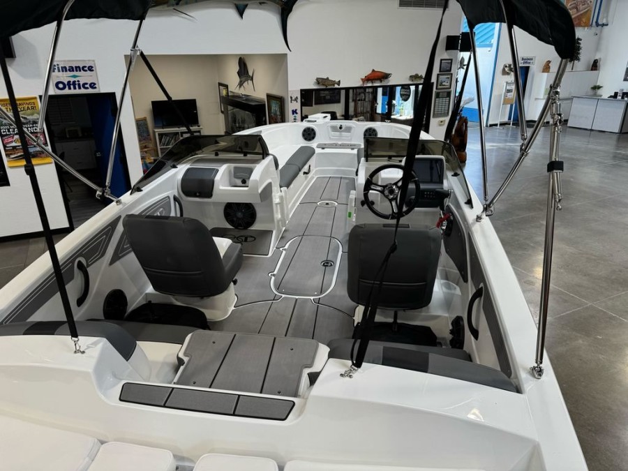 An 8″ touch screen console delivers real‑time data on engine health, water depth, and cruising speed. Integrated Bluetooth lets you stream music through the Kicker® stereo system while enjoying your favorite playlist during every trip.