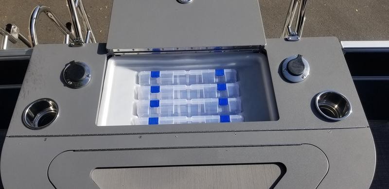 This model starts at $49,995 with four in‑stock colors. The base price includes the double Bimini tops, movable bow bench seat, upgraded captain’s chairs, fitted mooring cover, tandem trailer, and a standard 75 hp Honda 4‑stroke engine. Engine options up to 150 HP are available for an additional fee.