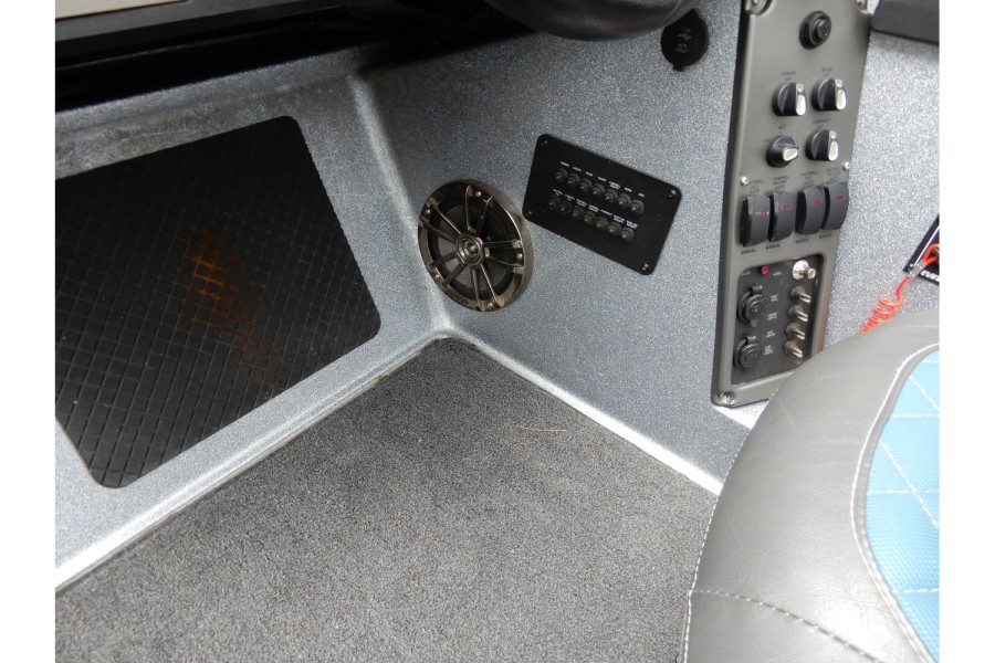Owner‑only vessel featuring the comprehensive Patriot Package—includes a 4‑bank charger, keel guard, tilt steering system, LED lighting, Bluetooth stereo and snap‑in carpet.
