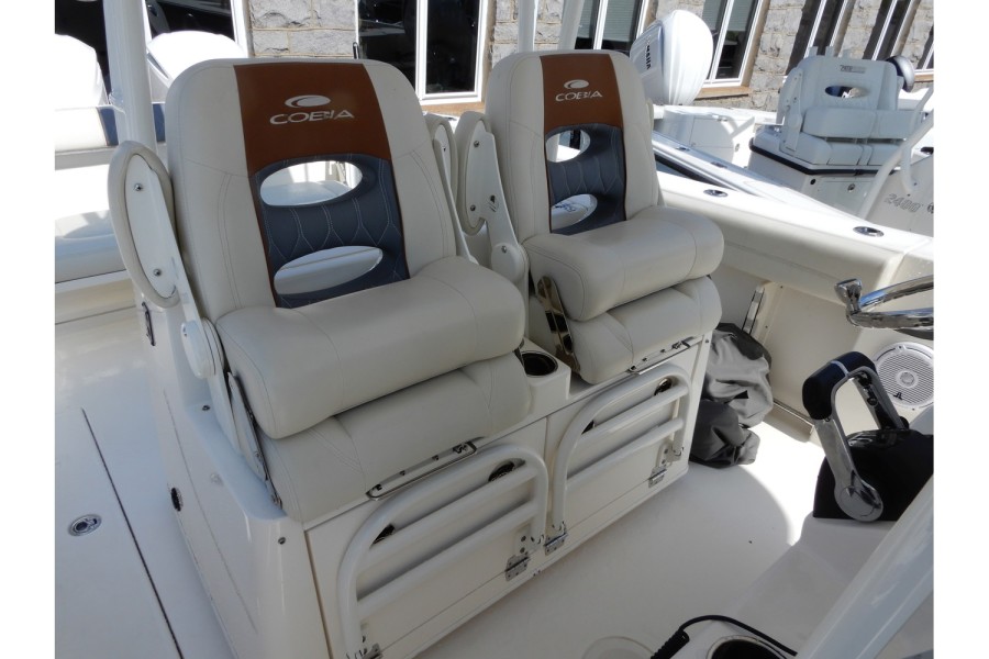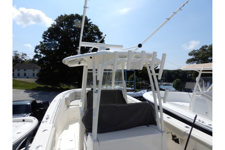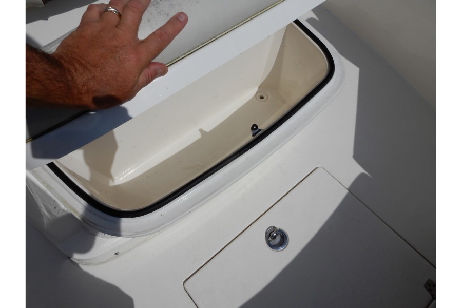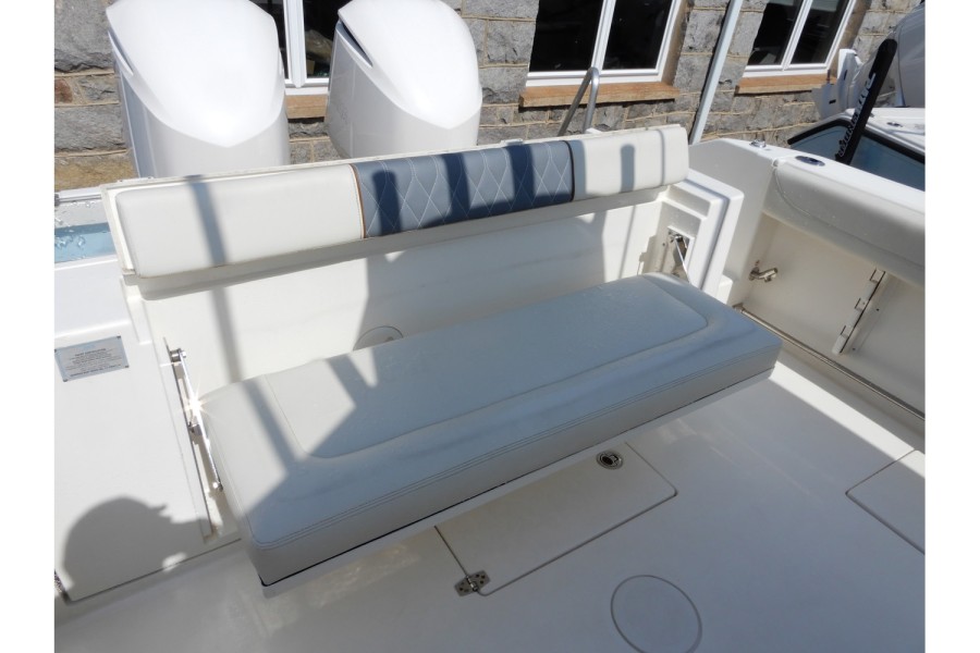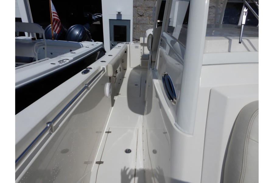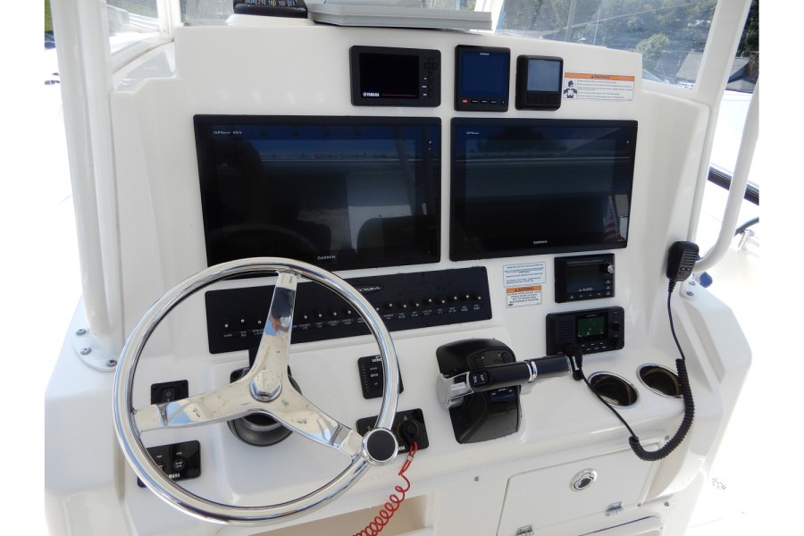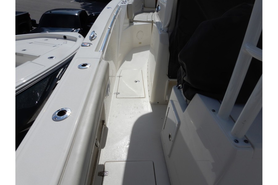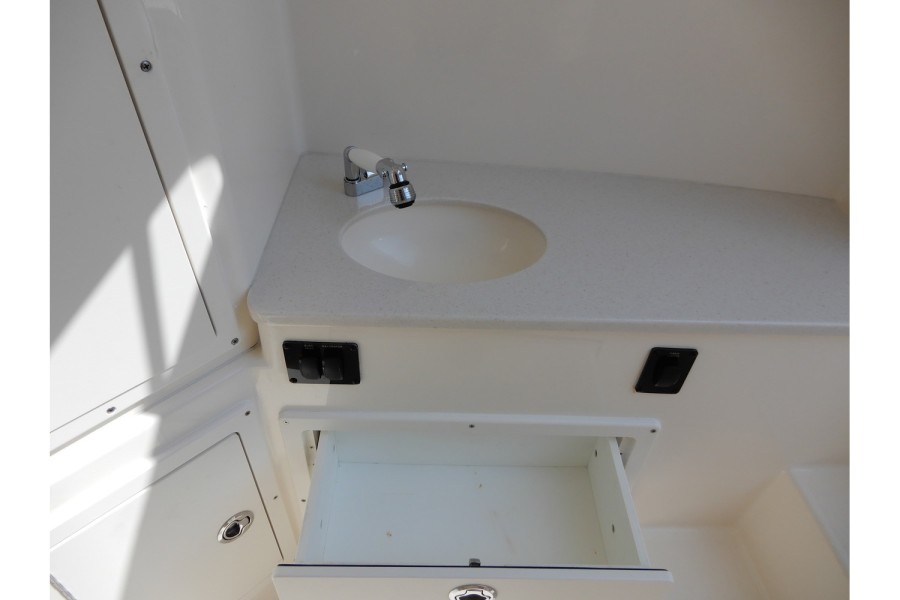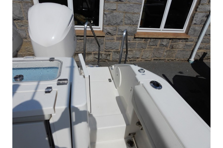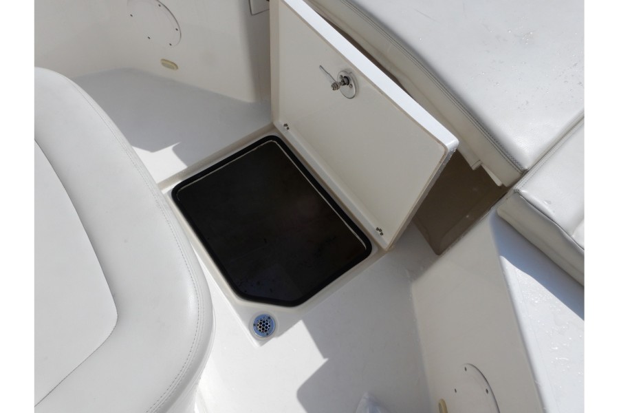 The 320 CC is equipped with large livewells (70 gallons combined) and under‑gunwale rod storage. Twin pressurized livewell tanks keep your catch fresh, while the deck features a dedicated tackle center complete with sink and bait prep area.