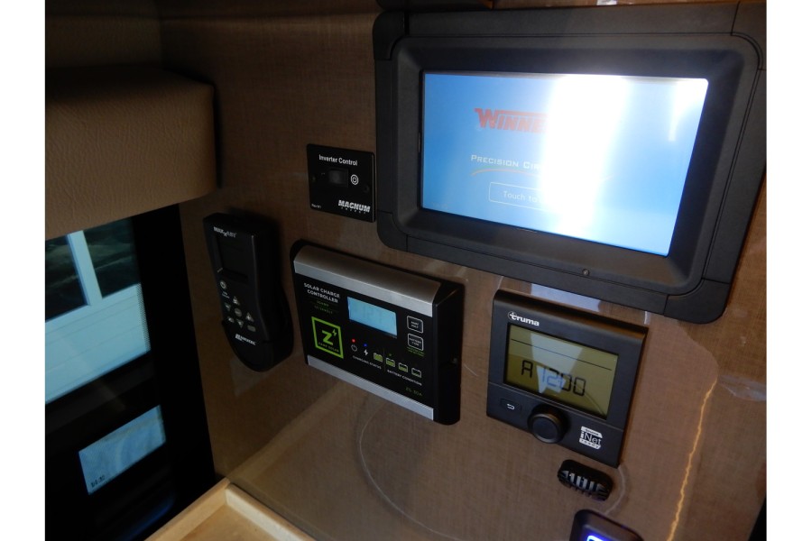 The Truma Combi™ water/coach heater delivers reliable warmth using LP fuel or a 110‑volt electric connection. Two high‑efficiency heating elements provide fast, even heat for winter travel. The vehicle’s alternator is rated at 220 amps to support all onboard electrical needs.