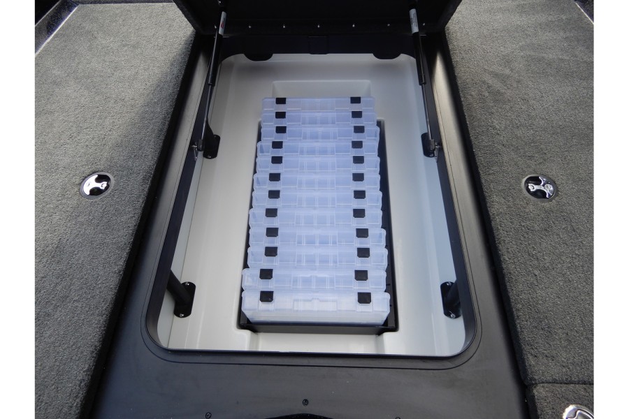 The boat’s layout supports a comfortable five‑person capacity, generous fuel storage, and ample cargo space for extended trips. Its fiberglass hull ensures durability while maintaining lightweight performance.