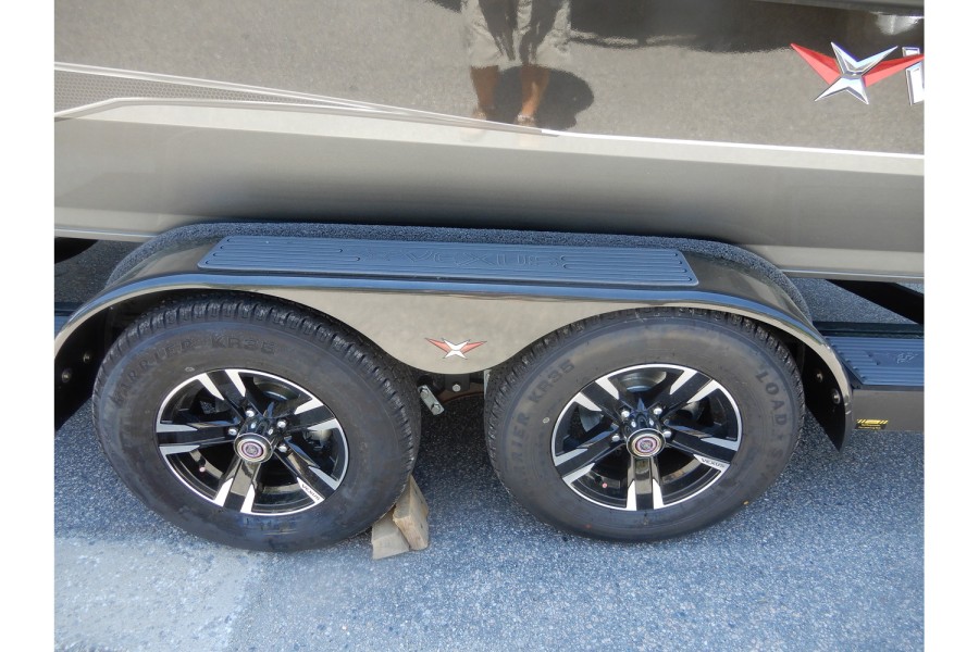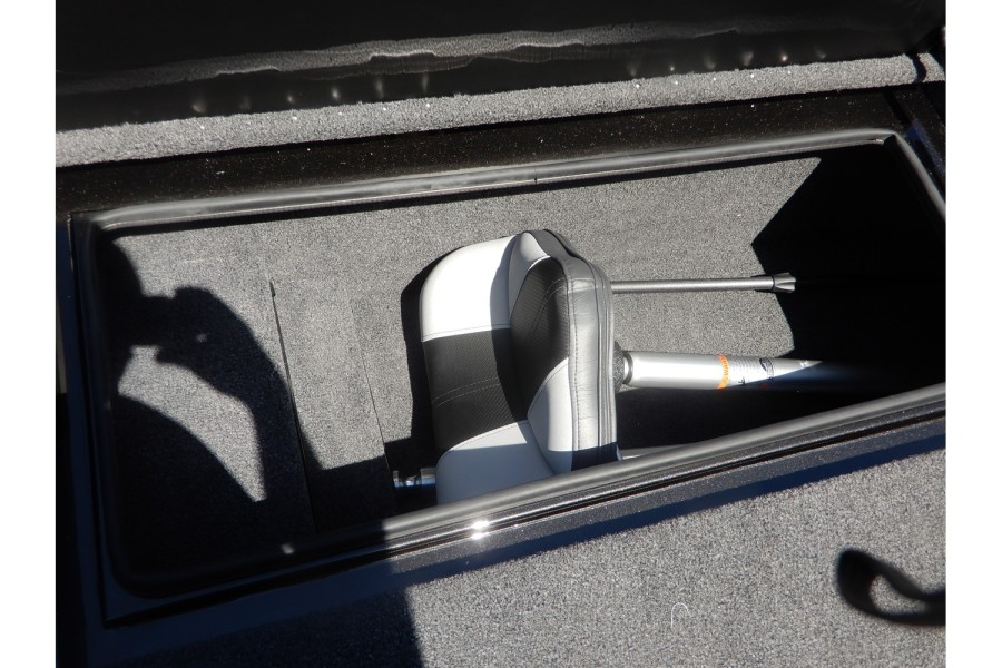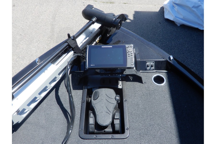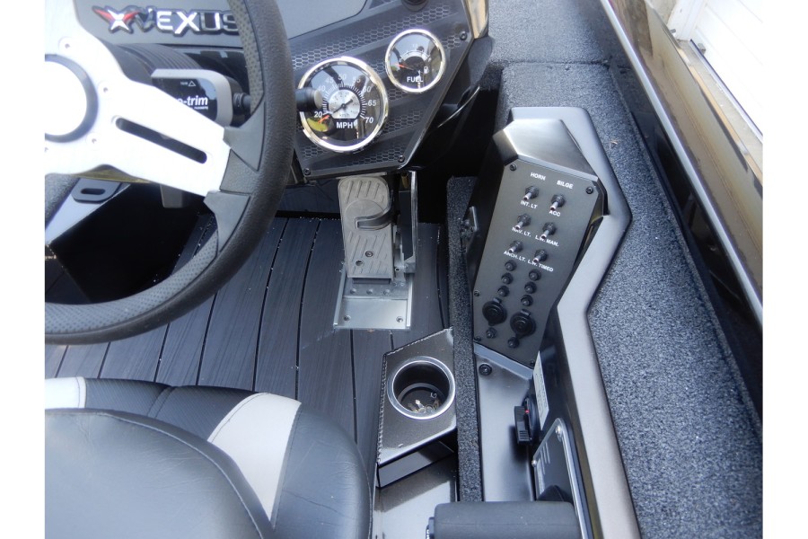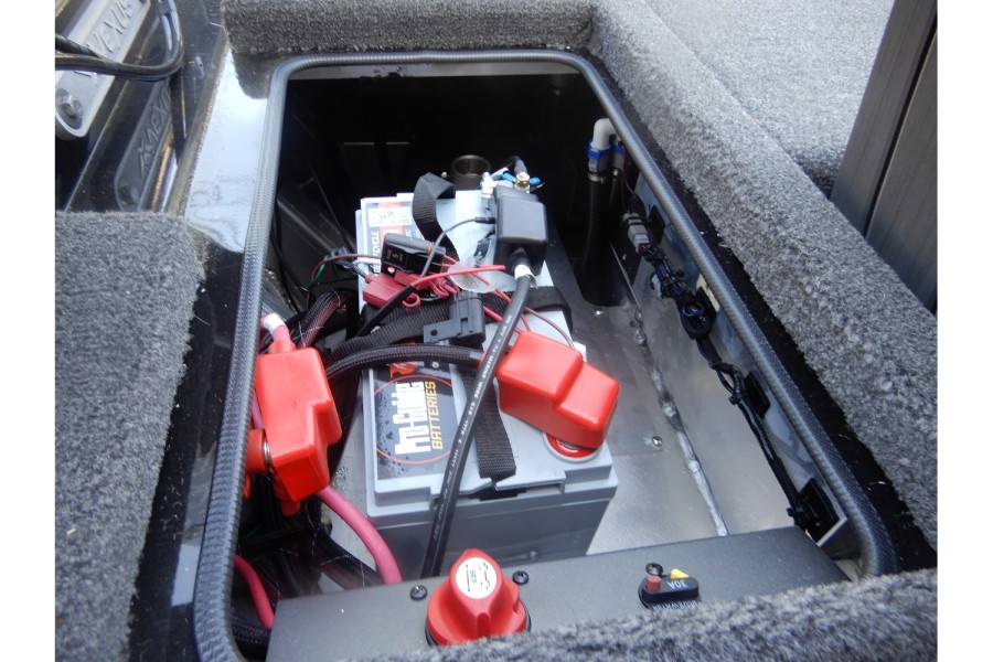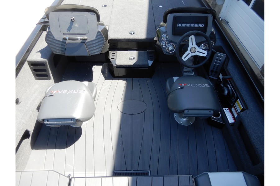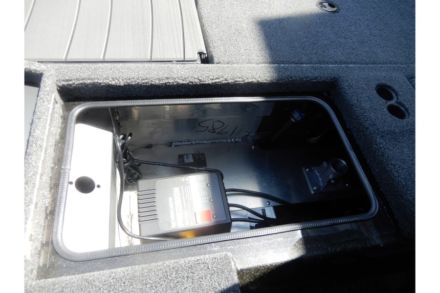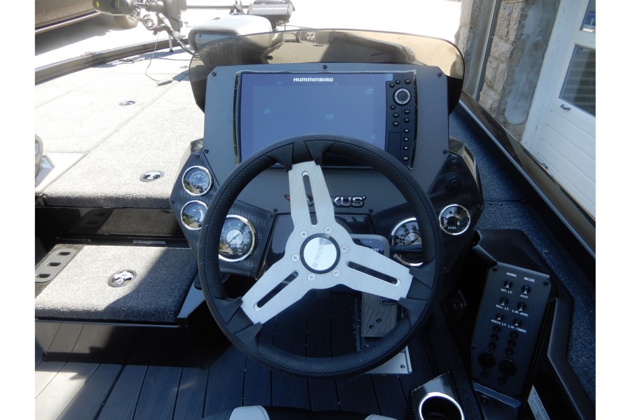 The hull is constructed from lightweight aluminum, offering strength and resistance to corrosion.