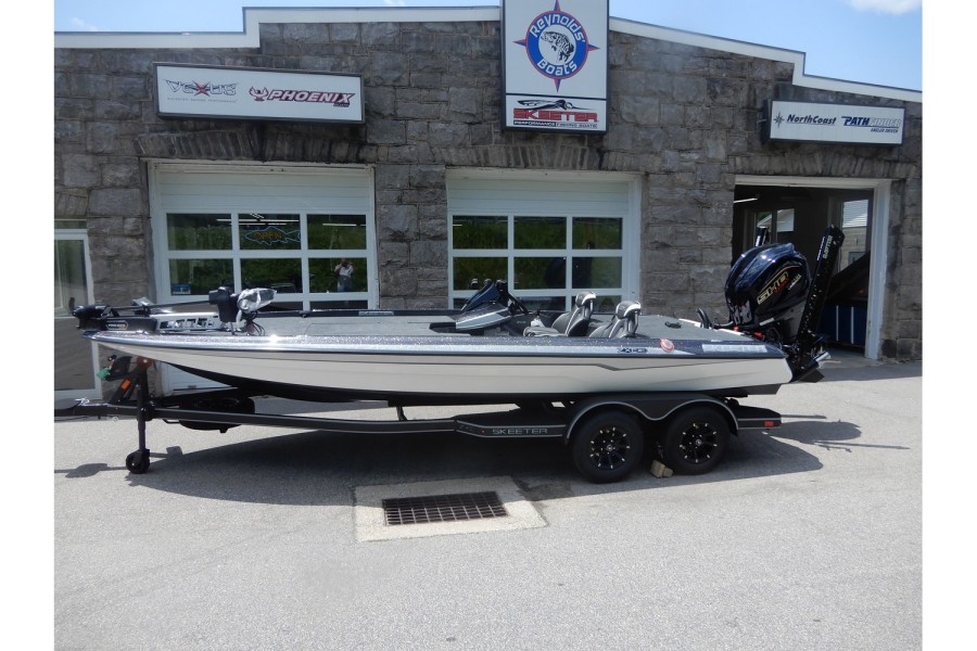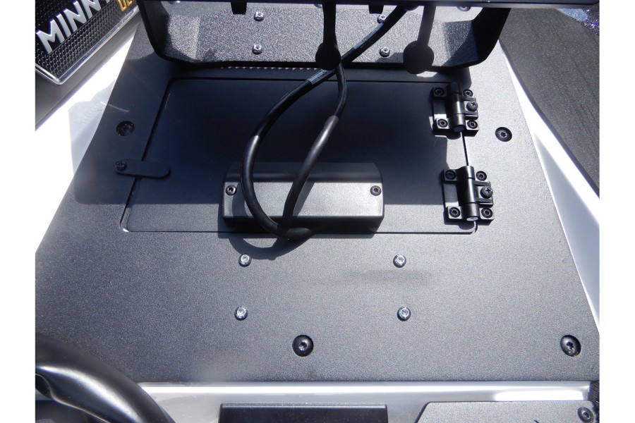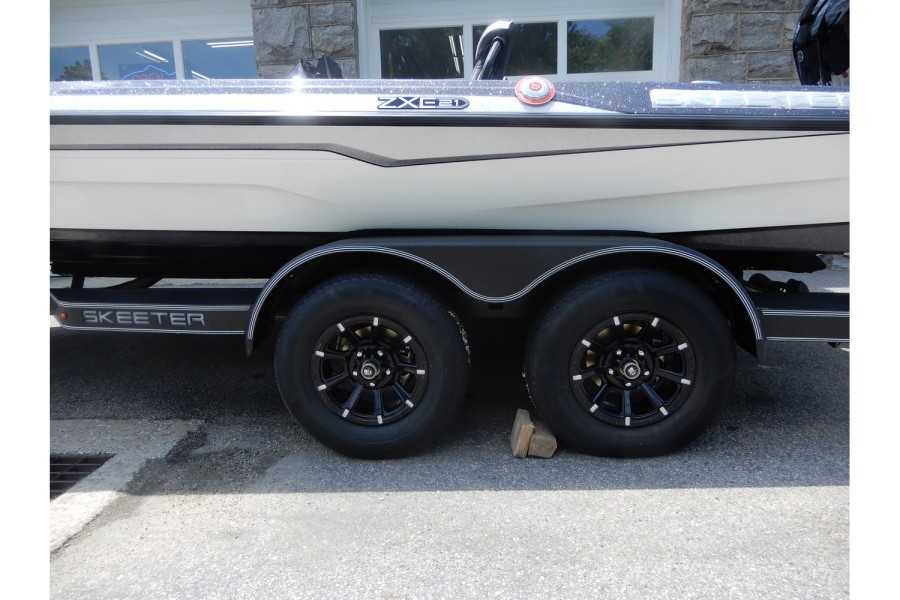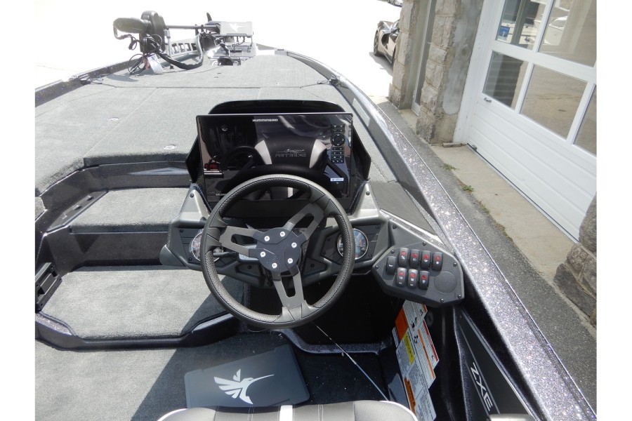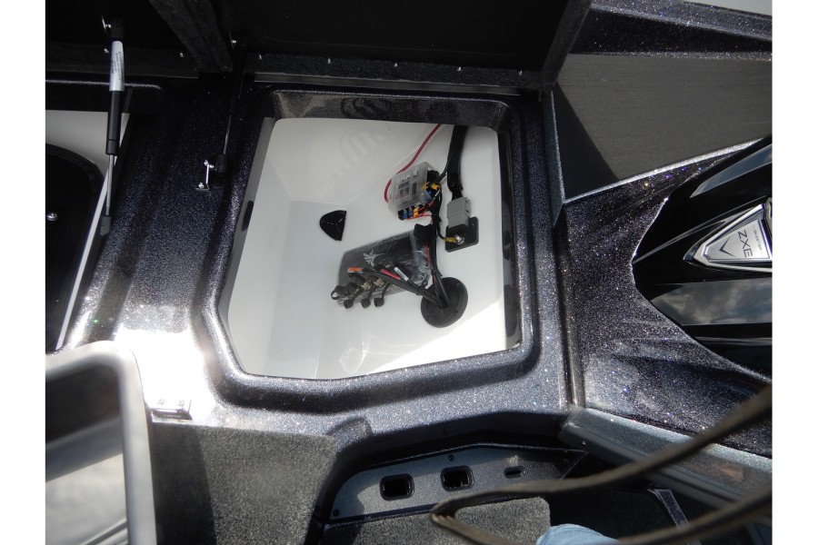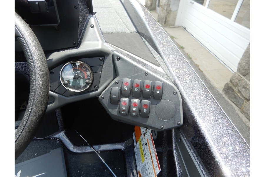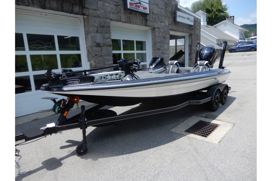 The package also comes with a custom cover and the Minn Kota Quest motor upgrade. The boat is the 2026 ZXE21 model.