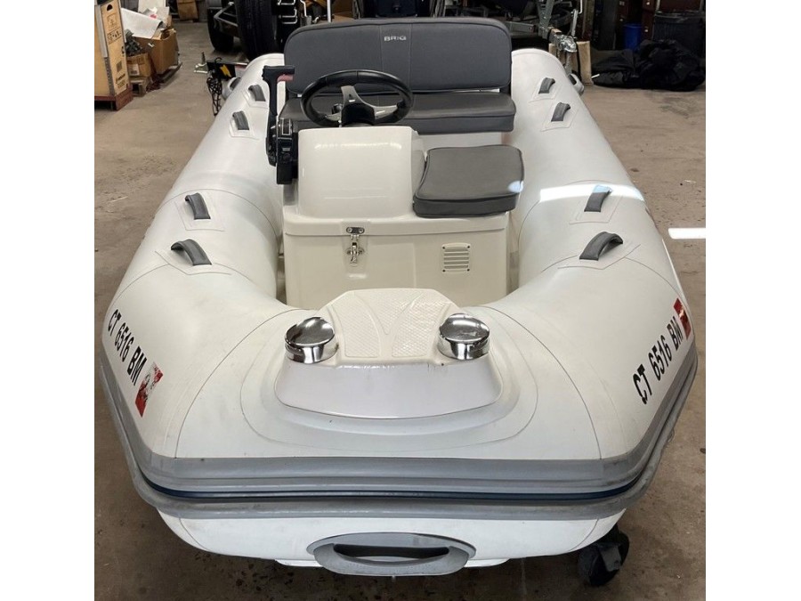 [read more]Discover this reliable and versatile pre-owned power tender: a 2016 BRIG F330HT, also known as the Falcon Tender 330. This robust inflatable boat is an excellent choice for recreational use or professional marine applications in Connecticut waterways. Combining the durability of Hypalon/Fiberglass construction with powerful performance capabilities, this specific model offers exceptional stability and maneuverability.