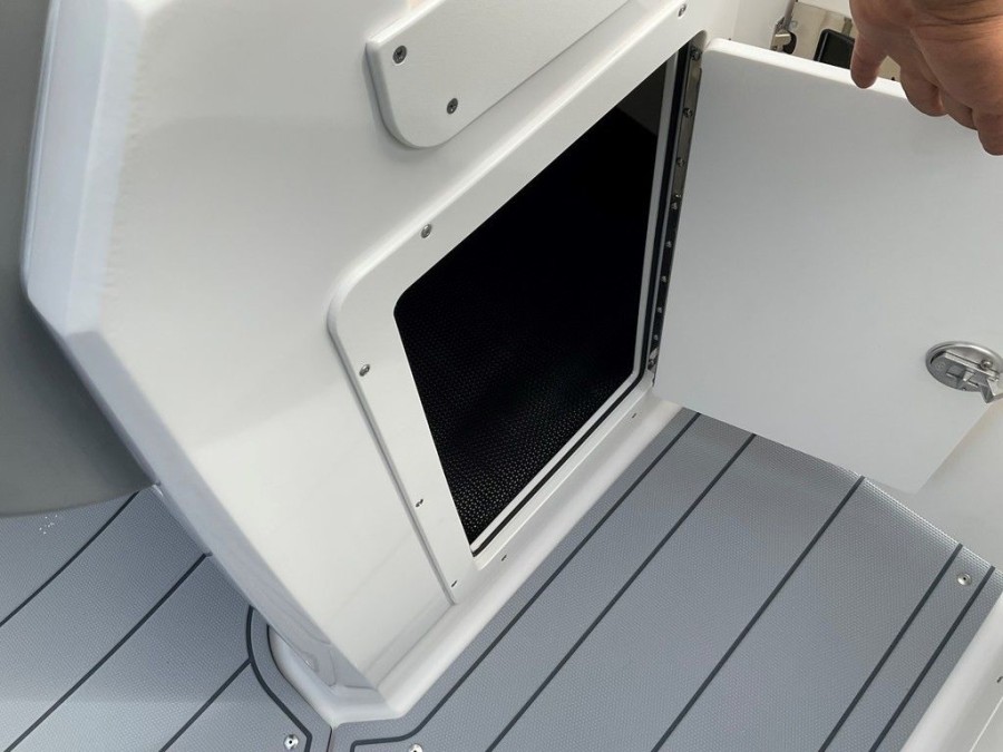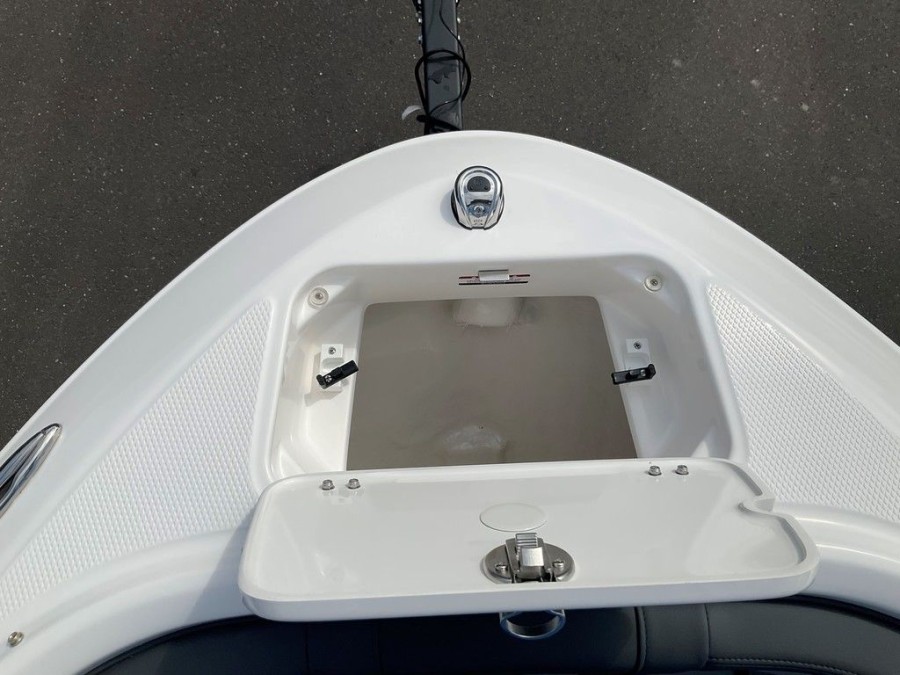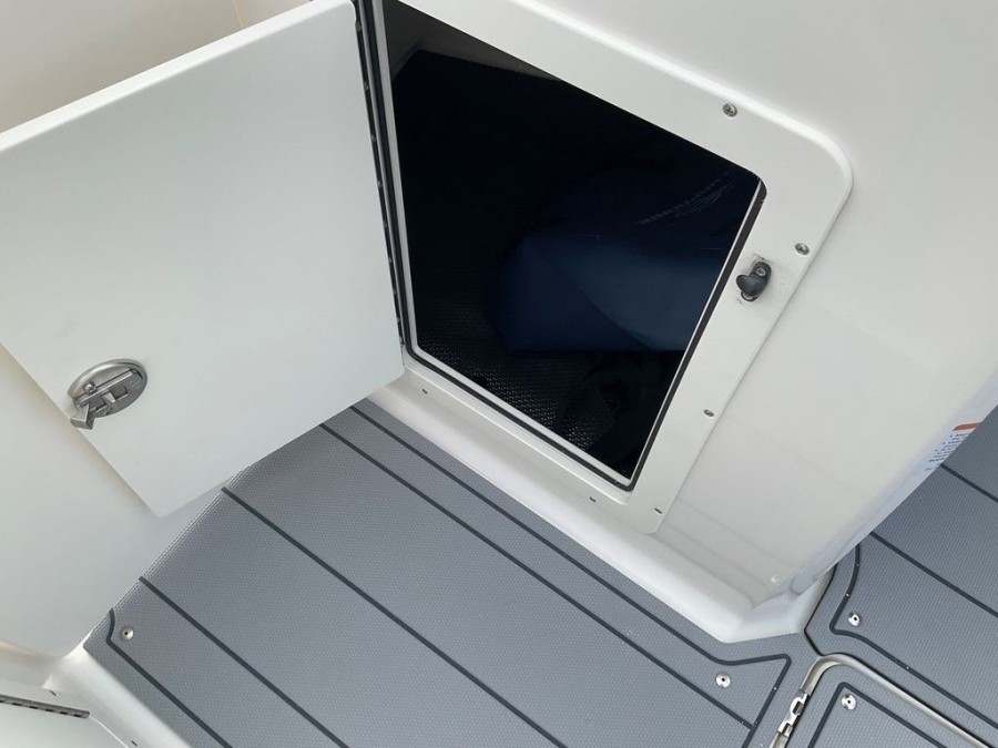 Step aboard and experience a meticulously designed cockpit space built for socializing and recreation. The layout includes comfortable bow cushions with integrated storage underneath and the ability to walk through via an anchor locker forward access point, ensuring ample room for everyone on board. Key interior features include: