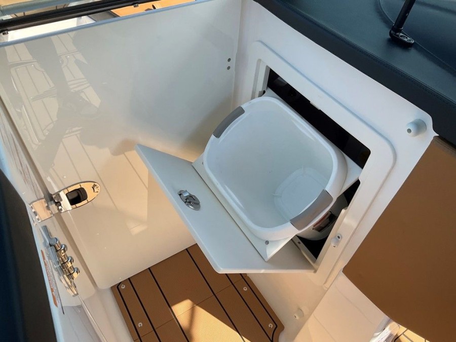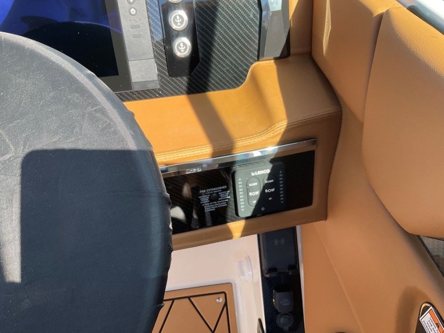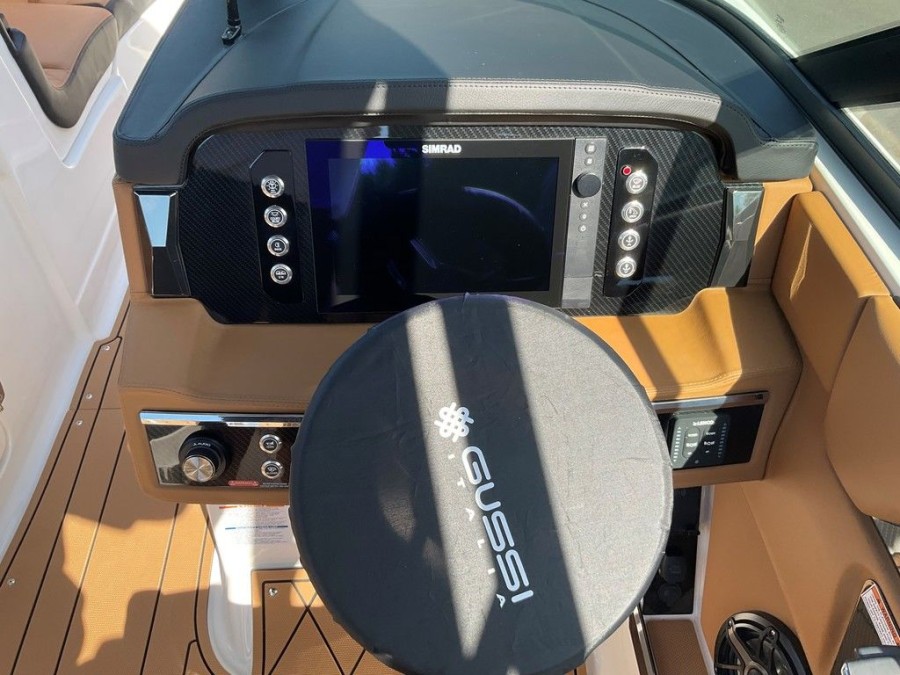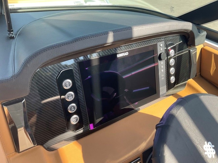 From the moment you step aboard, the quality of craftsmanship shines through. The cockpit is designed with exceptional ergonomics in mind, featuring ample space for socializing or relaxing while maintaining easy access to critical controls. Standard equipment includes state-of-the-art navigation aids, such as an oversized 12" Simrad display at a highly accessible helm station.