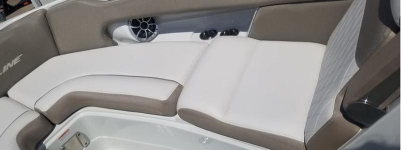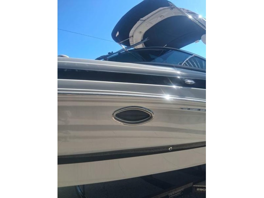 The Crownline 290 SS can be customized with two color choices, a full hull band with accent stripe, middle deck band matching the deck vents, hand‑wrapped shroud wheel, and optional trailer. These features enhance both aesthetics and functionality for the modern water enthusiast.
