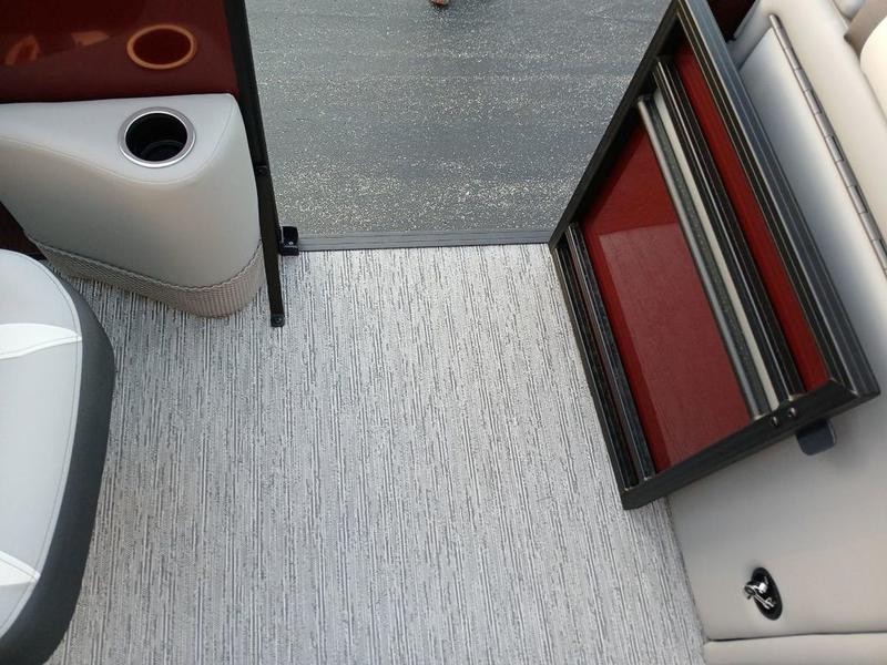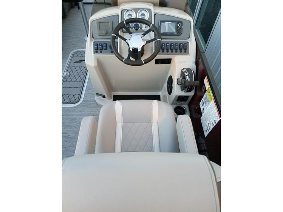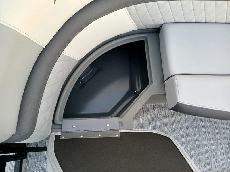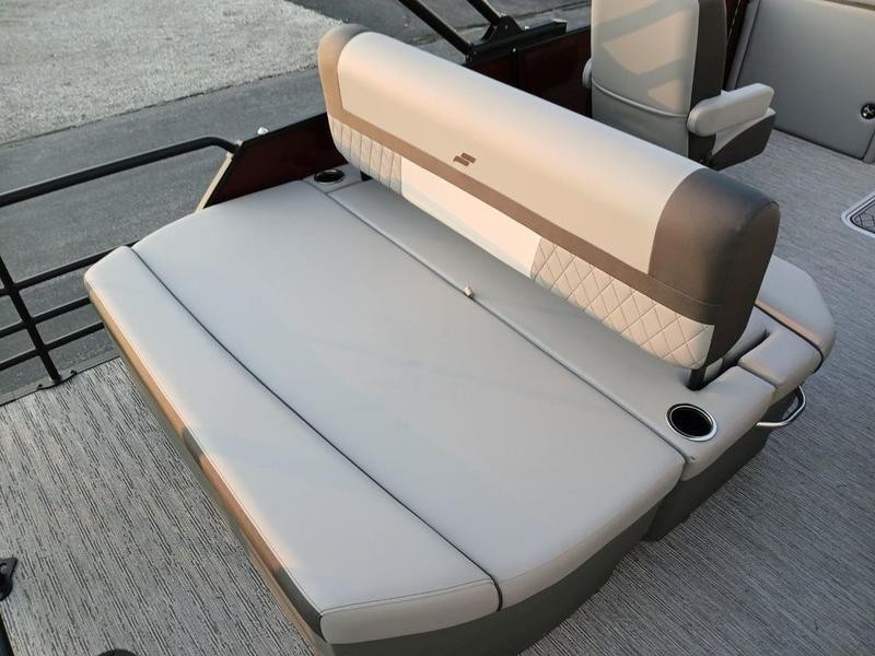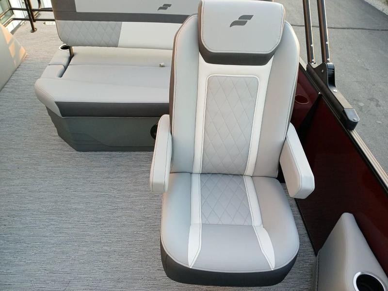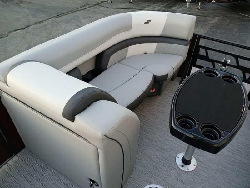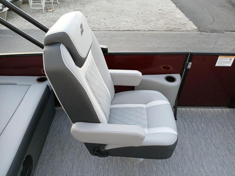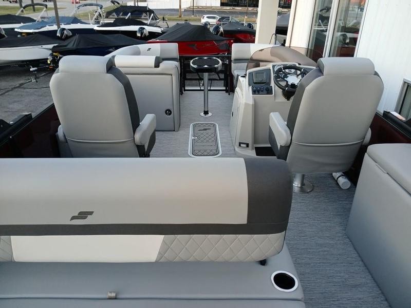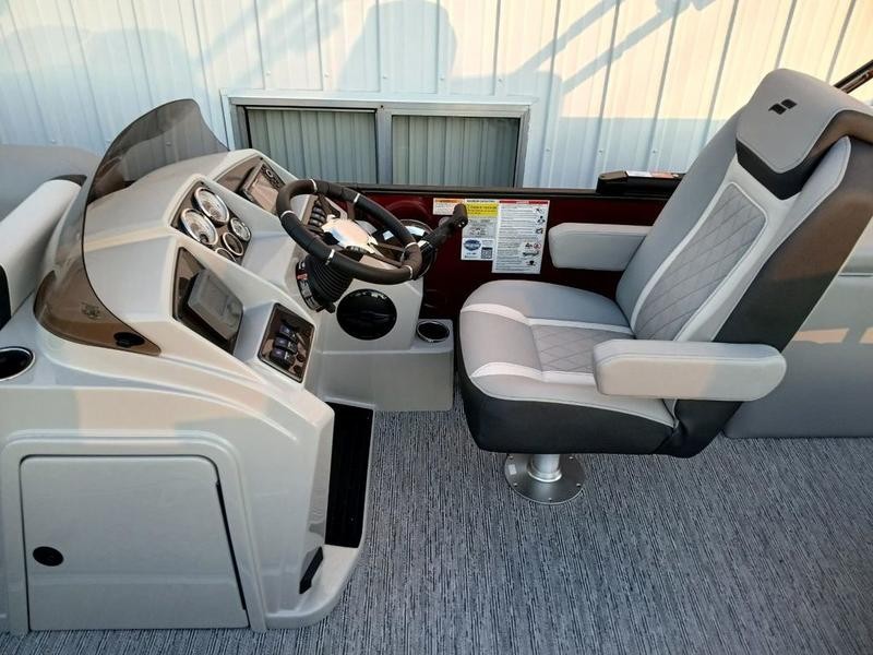 Space and comfort are priorities on this pontoon boat. With dual helm chairs and wraparound lounge seating both in the front and rear areas, there is ample room for socializing or simply relaxing after a day of boating. Every detail has been considered to enhance your experience: