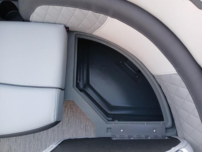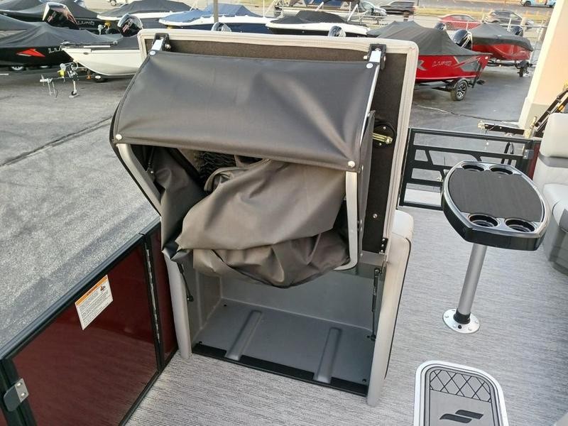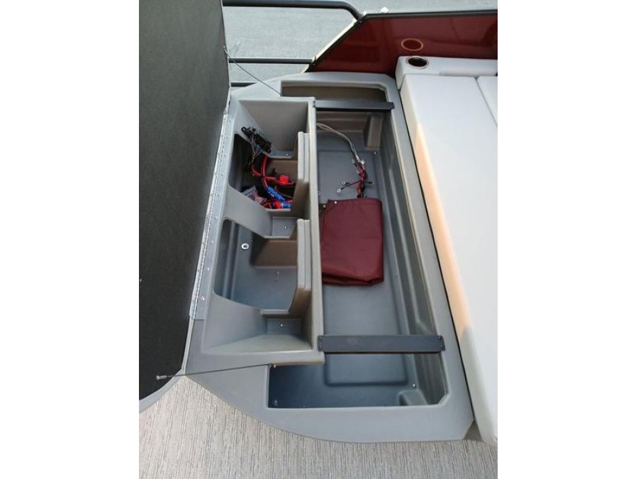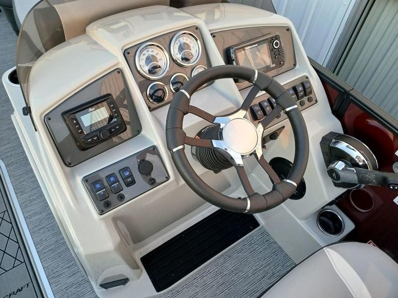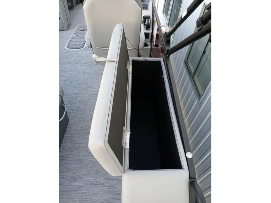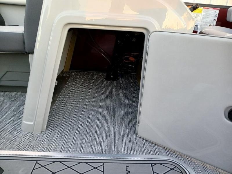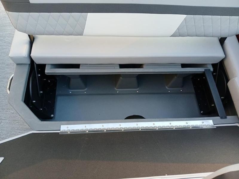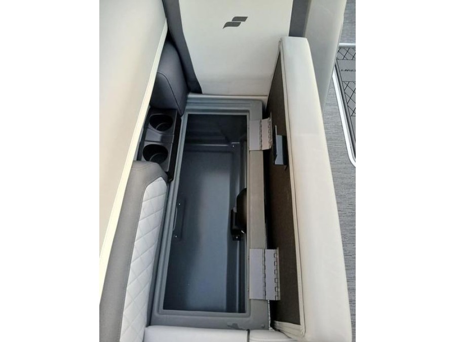Space and comfort are priorities on this pontoon boat. With dual helm chairs and wraparound lounge seating both in the front and rear areas, there is ample room for socializing or simply relaxing after a day of boating. Every detail has been considered to enhance your experience: