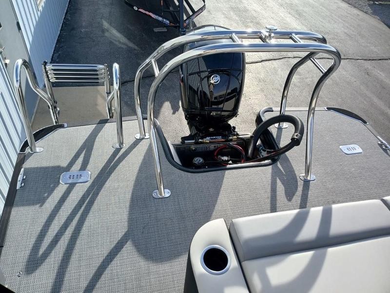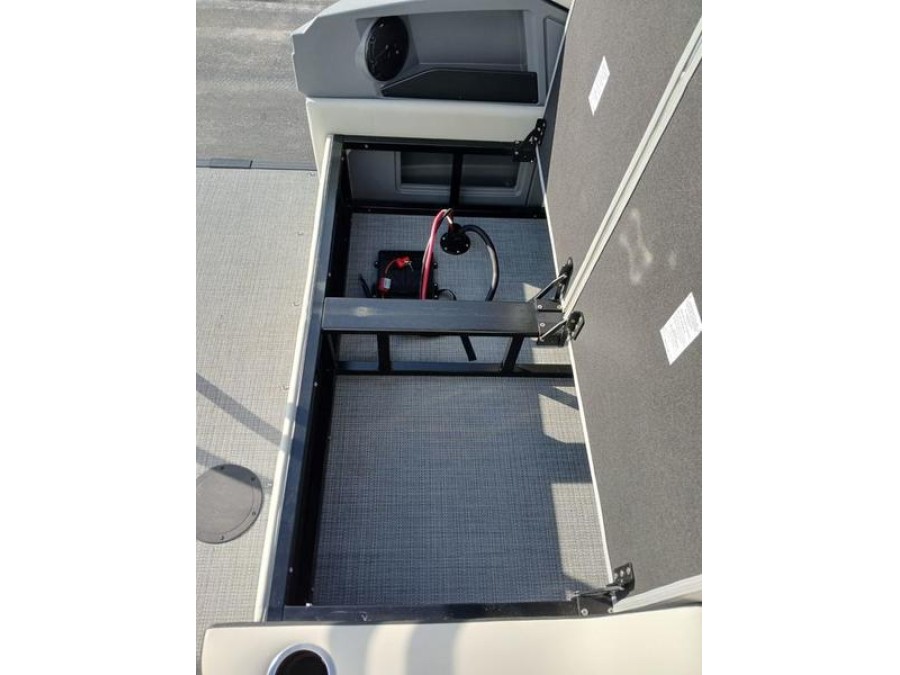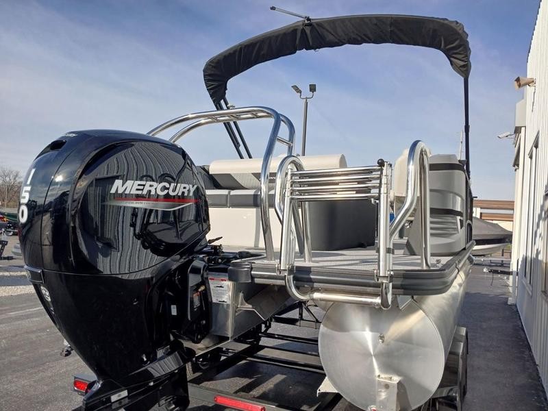 Powered by a reliable Mercury 150L engine delivering 150 horsepower, this pontoon offers efficient fuel economy and dependable speed for day trips or longer excursions.
