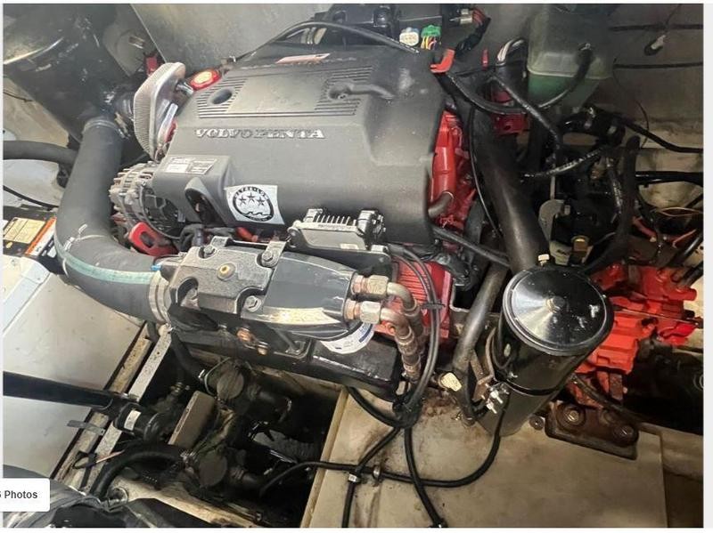 This 37-foot Larson Cabrio is powered by a robust 375 hp 8.1L Volvo Penta V8 engine, paired with both bow and stern thrusters for precise maneuvering.