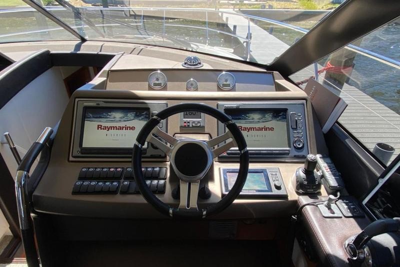 Proudly powered by Volvo D6 IPS engines, this Prestige is simple to handle and stress‑free at dock thanks to three joystick docking stations. It has been stored indoors in heated storage with all engine and drive oil services completed over the winter. Pods were replaced around 900 hours for added peace of mind.