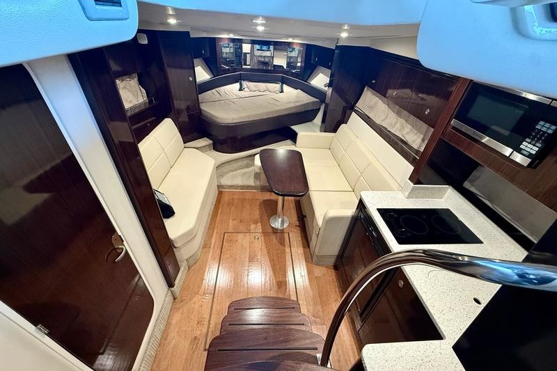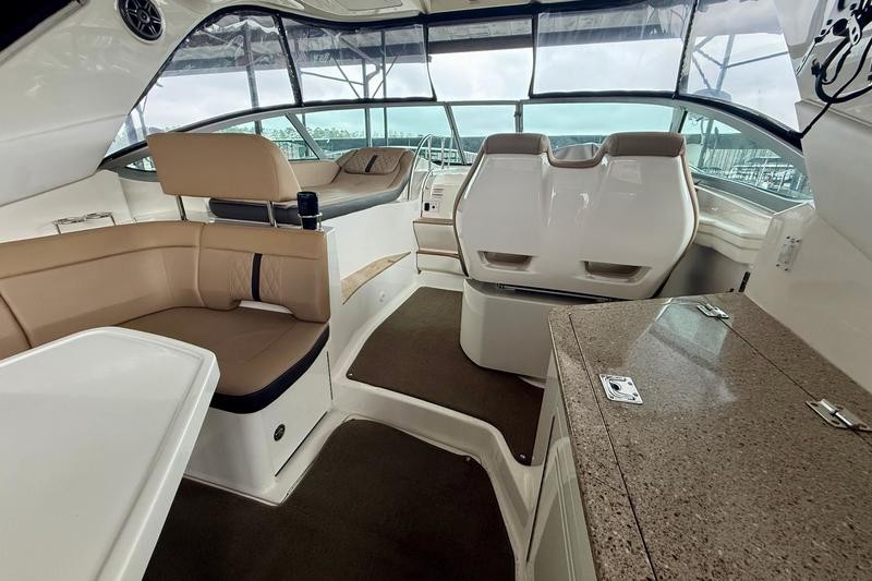 The vessel is powered by twin MerCruiser 8.2L MAG engines equipped with AXIUS joystick docking and upgraded Bravo III outdrives. These features provide effortless handling and a smooth, confident ride on any waterway. With roughly 350 engine hours and about 450 generator hours, the Sundancer is ready for immediate enjoyment.