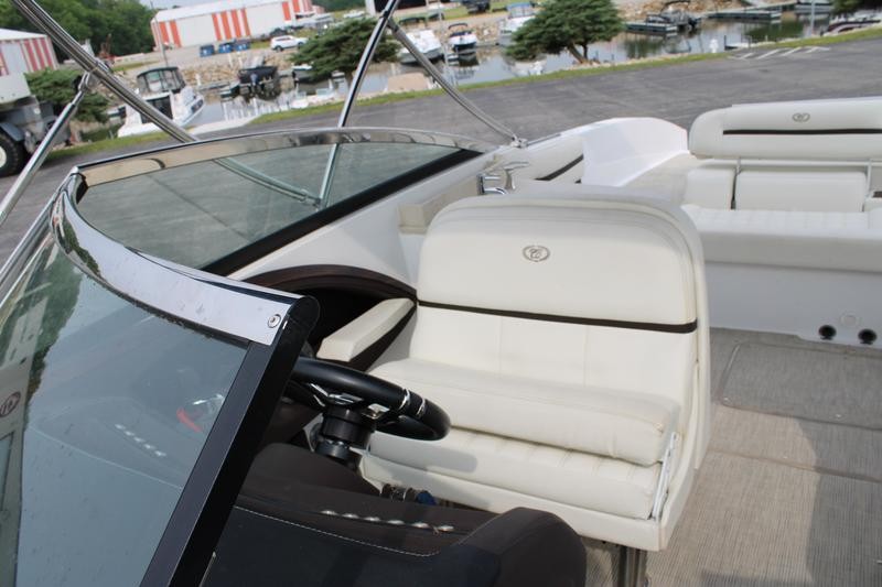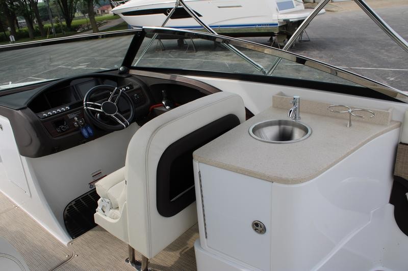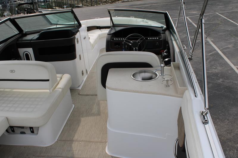 This dealer-owned vessel has spent its life cruising along the Mississippi between St. Paul, MN and Prescott, WI. It is meticulously maintained: annual buffing and waxing in spring plus acid washing for the bottom each fall ensure a pristine hull and deck. A perfect opportunity to own a clean freshwater Cobalt.