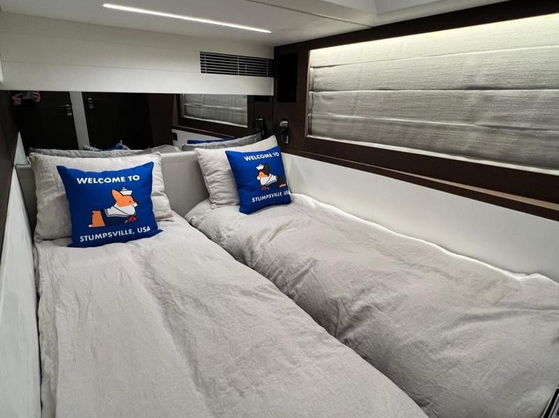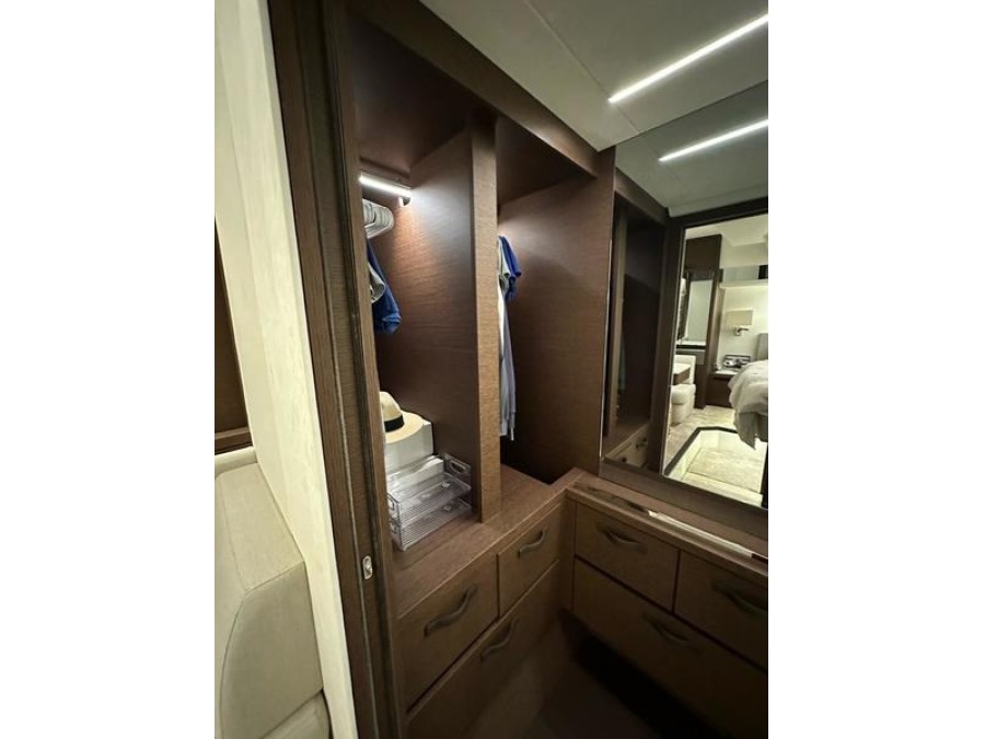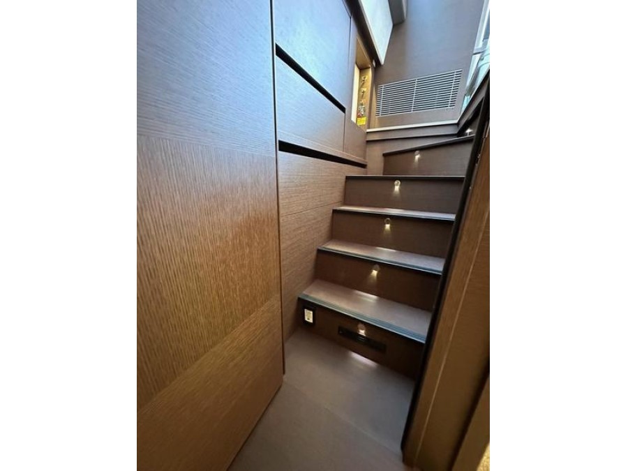 This yacht features dual Cummins 600 HP twin engines with ZEUS PODS, optimized for smooth handling via joystick control. The tapered V‑shaped hull reduces noise, vibration, and fuel consumption, ensuring a quiet and efficient voyage.