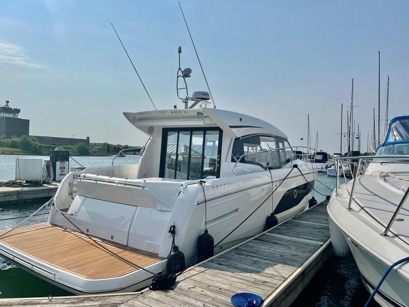 This cabin‑cruiser is ideal for day trips or extended adventures on the water. Dealer owned, professionally maintained with a lift kept in place and less than 250 hours of use.