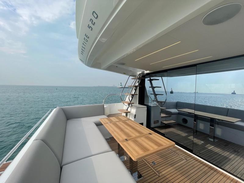 The Prestige 520 combines classic prestige features with modern enhancements. The standout element is its expansive flybridge—one of the largest on any 52‑foot yacht, ideal for lounging, dining, entertaining or simply taking in scenic views.