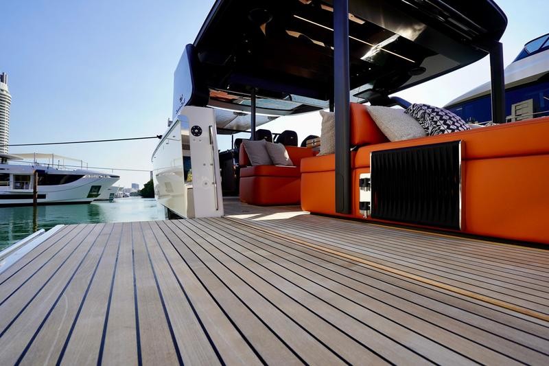 The overall layout emphasizes usability—wide walkaround decks allow easy movement throughout the entire walkaround boat structure, reinforcing a sense of spaciousness and effortless navigation critical to modern yachting design.