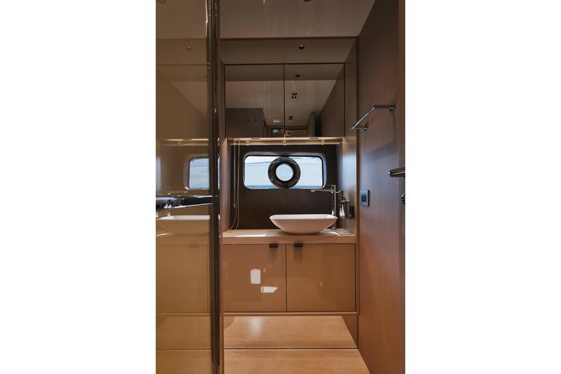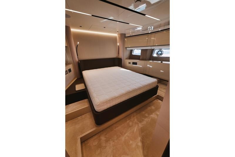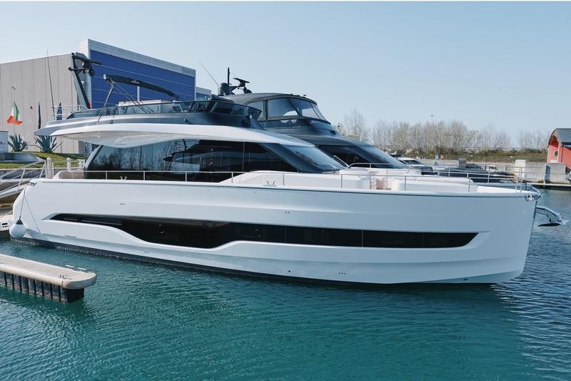 The acclaimed art direction by Christian Grande ensures a cohesive family feel across this model range. While perhaps the smallest of its siblings, the Sessantadue 62 ft maintains distinctive and unique characteristics in both exterior styling and interior décor choices, making it an irresistible choice for discerning buyers looking for a high-end powerboat experience.