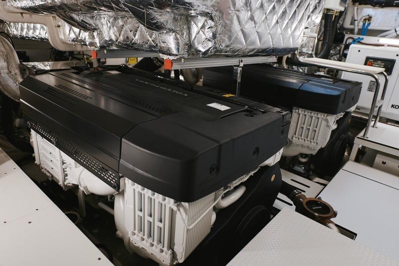 The Cranchi Sessantadue 62 is powered by a robust diesel system, featuring dual Volvo Penta D13 IPS engines. This powerful setup provides exceptional performance for any luxury cruising adventure.