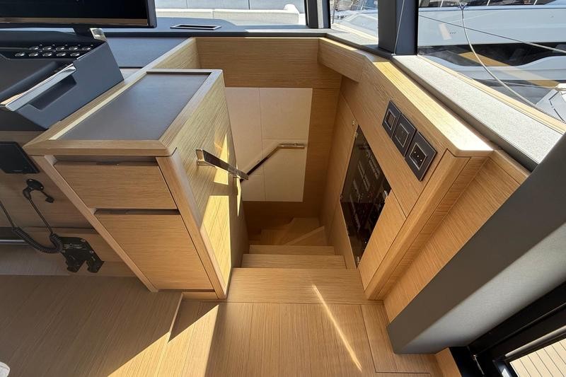 A hydraulic swim platform at the stern expands the aft deck into a tranquil waterfront lounge. Whether you’re anchored or underway, it offers instant access to water activities without compromising interior elegance.