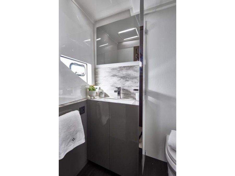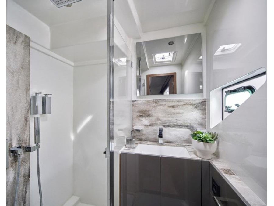 The M48 is powered by twin Volvo Penta D4 engines, delivering efficient cruising with the stability that multihulls offer. The hull design keeps the ride smooth and quiet, while intuitive helm controls make navigation easy and enjoyable.