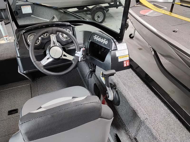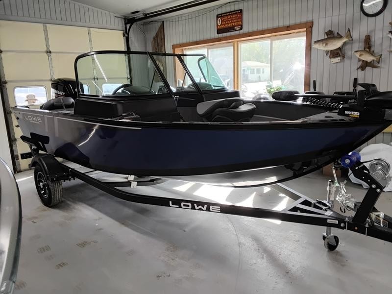 The Lowe FM 1675 WT is built on an all-aluminum hull structure, providing unmatched durability and stability whether you are navigating calm waters or tackling chop. Its deep V design ensures maximum handling capabilities in various conditions. This powerful fishing boat features a striking black base color complemented by sophisticated metallic blue accents, giving it both rugged appeal and class.