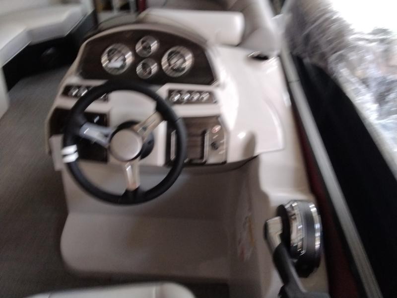 The 24‑foot pontoon offers a spacious deck, aluminum construction, and an efficient Mercury 115EXLPT four‑stroke engine for smooth cruising.