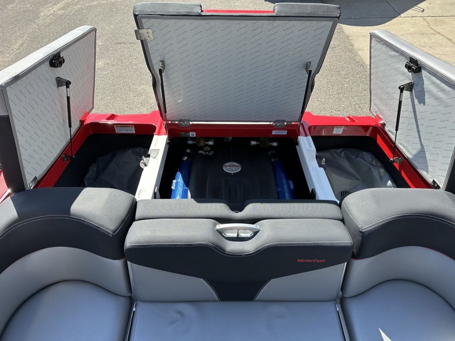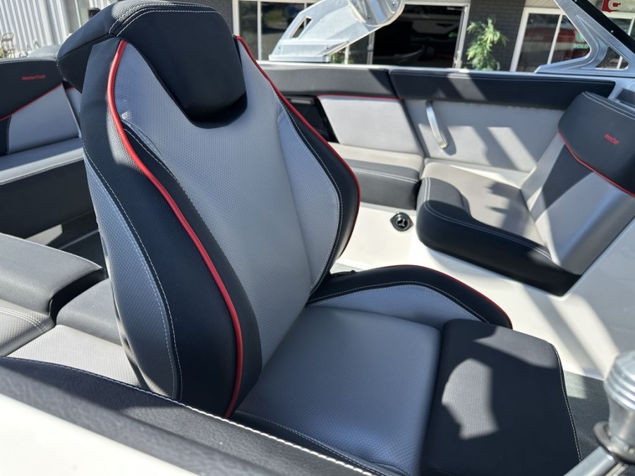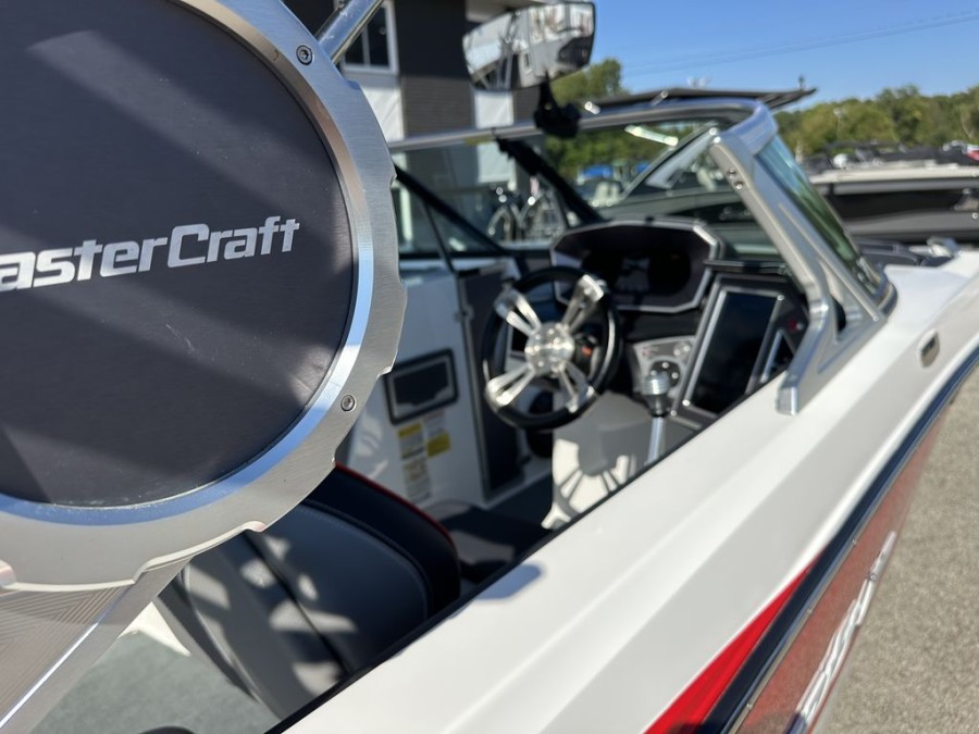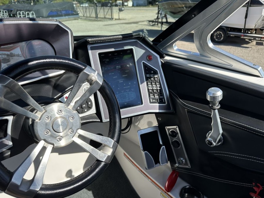 This specific MasterCraft XT22 wakeboat has been meticulously maintained. With exceptionally low engine hours (only 350 hours), it shows minimal wear and tear, meaning reliable performance for many seasons to come. The interior features a clean aesthetic, premium upholstery, and the hull remains in solid condition after recent detailing.