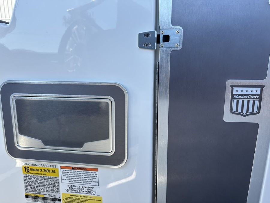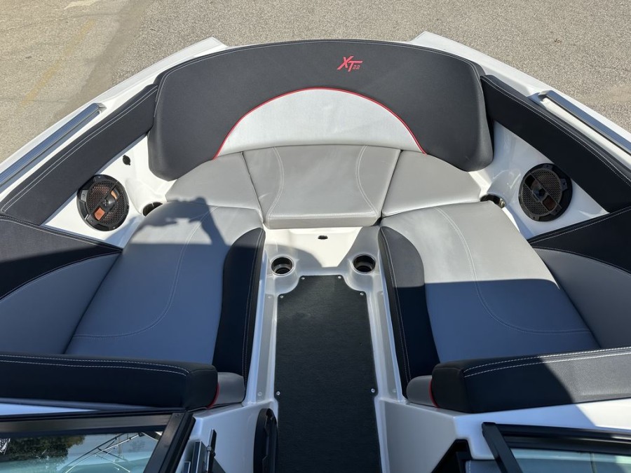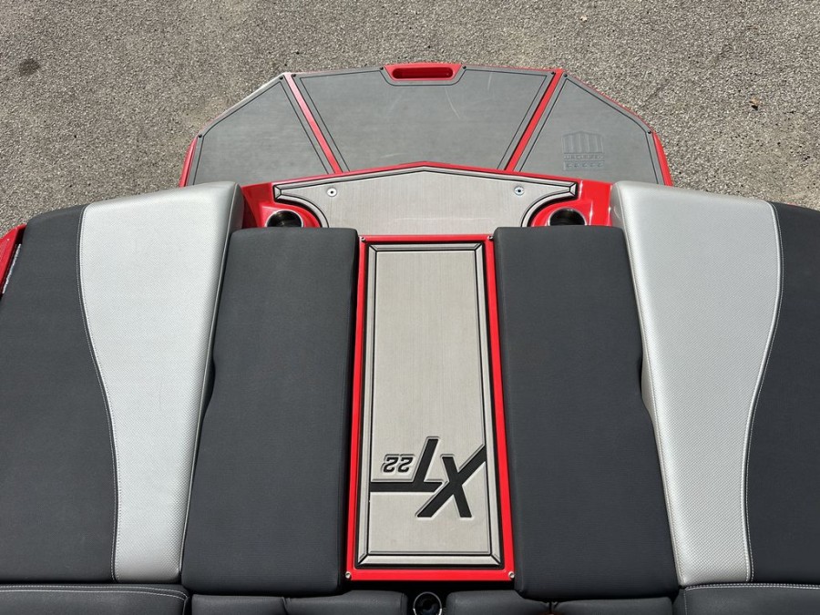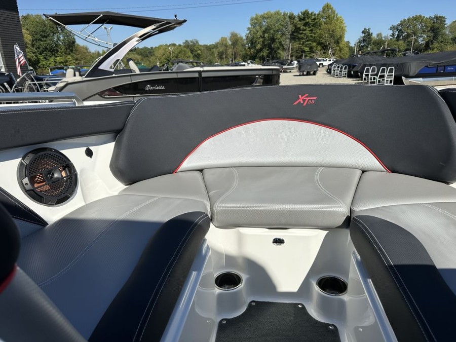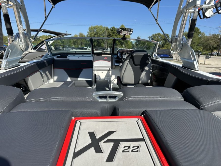 The XT22’s practical design includes numerous storage compartments throughout the boat—perfectly suited for gear, safety vests, boards, and all your boating equipment. Additionally, the folding tower with integrated board racks adds convenience whether you are launching wakeboards or surfboards from this premium inboard bowrider.