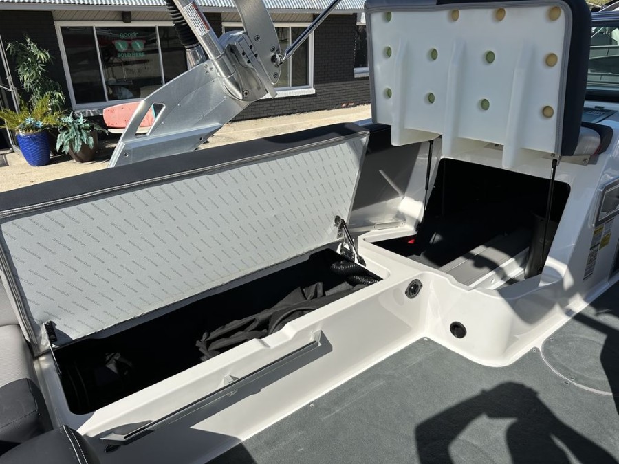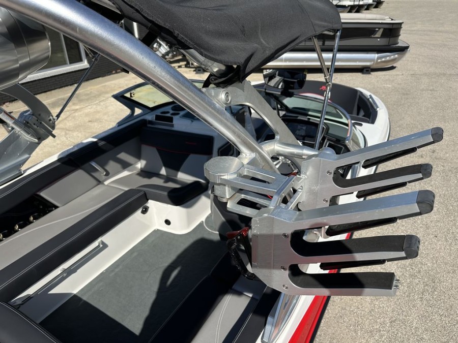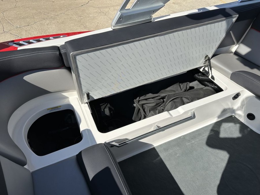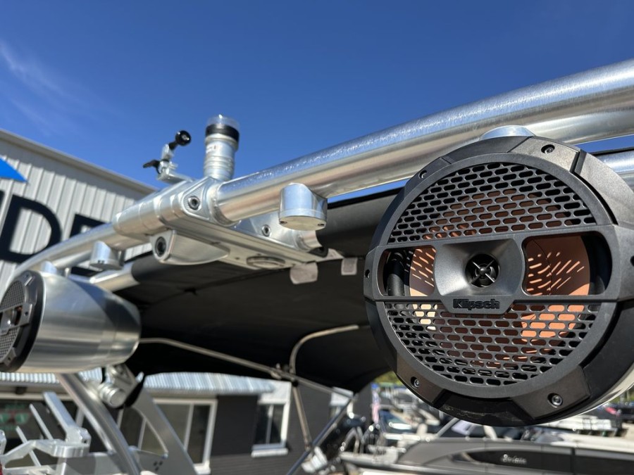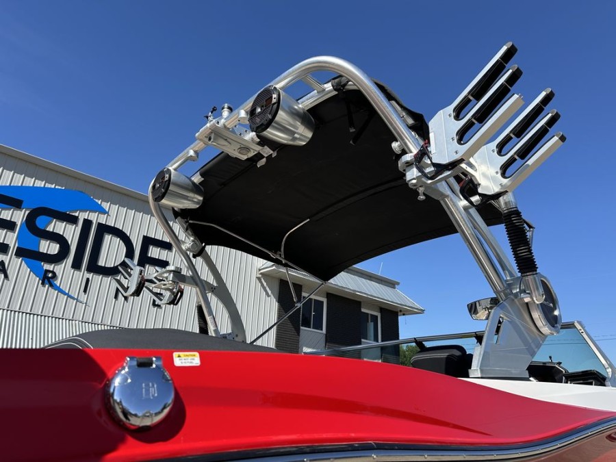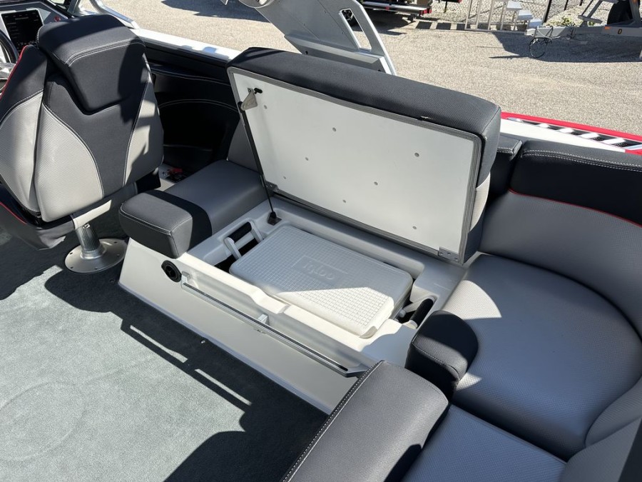 The XT22’s practical design includes numerous storage compartments throughout the boat—perfectly suited for gear, safety vests, boards, and all your boating equipment. Additionally, the folding tower with integrated board racks adds convenience whether you are launching wakeboards or surfboards from this premium inboard bowrider.