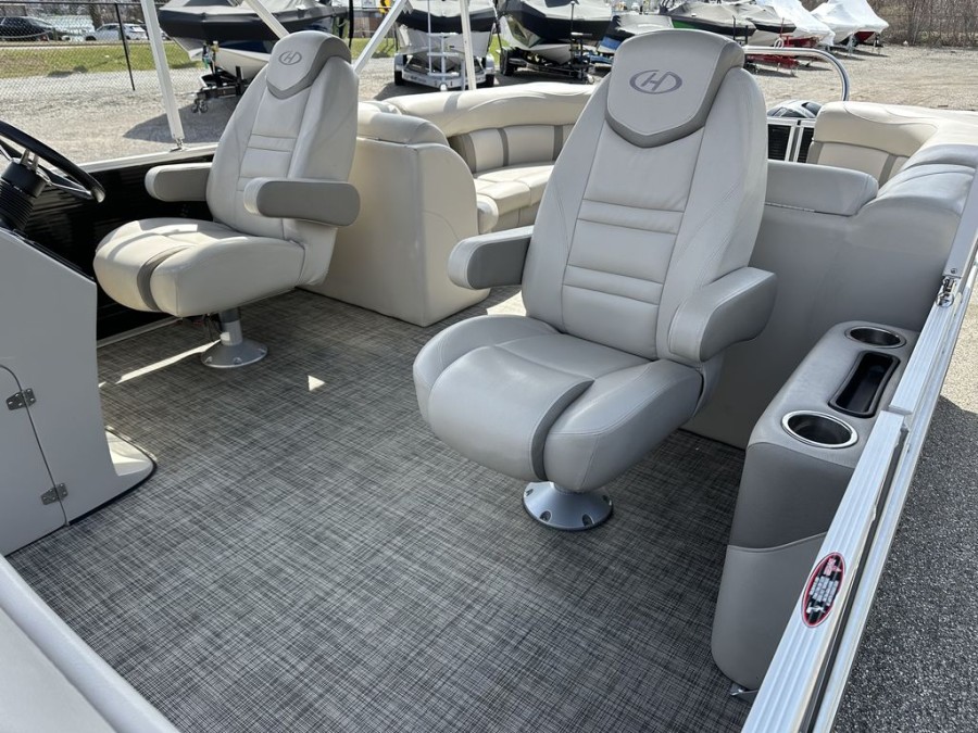 [read more]Looking for a reliable and spacious used Harris boat? The pre-owned 2019 Harris Cruiser 250 CS is an exceptional opportunity to own quality craftsmanship right here in Elkhart, Indiana. This robust 25ft Triton pontoon offers the perfect blend of comfort, stability, and performance, making it ideal for family outings or day cruising on local waterways near Simonton Lake.