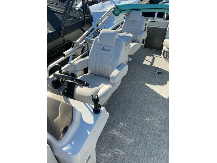 The Qwest Pontoons 824 Lanai DS Bar combines functional design with premium features to provide an unmatched boating experience. Whether you’re exploring lakes or entertaining on the shore, this pontoon delivers comfort, safety, and performance in a single elegant vessel.