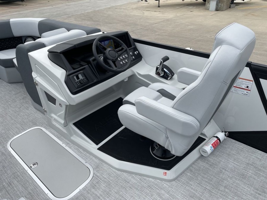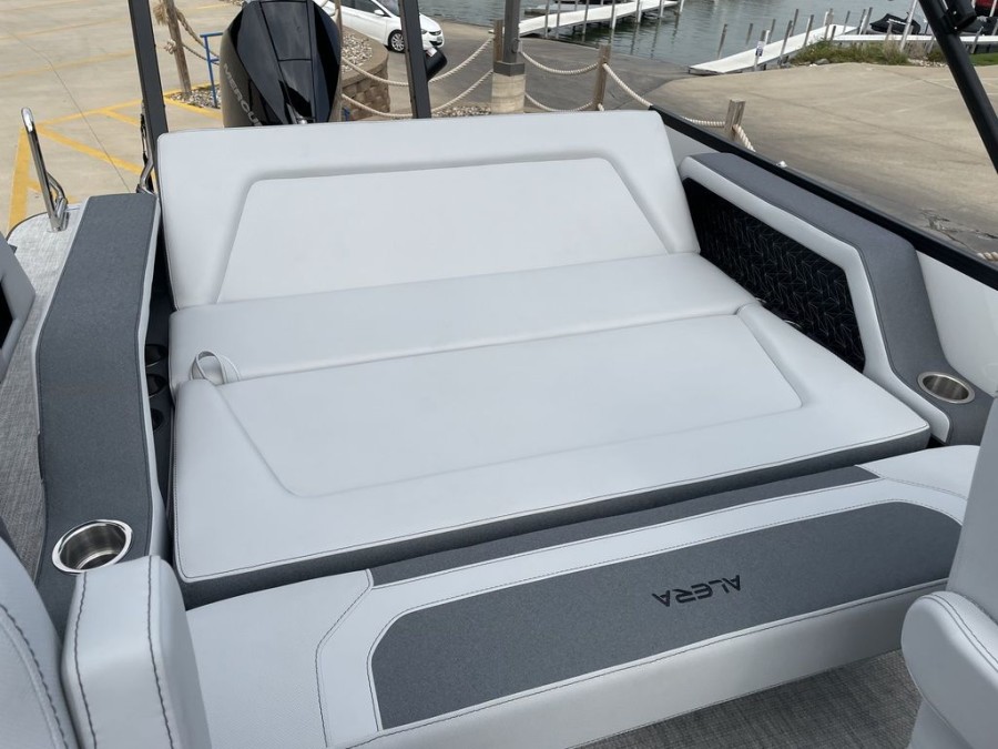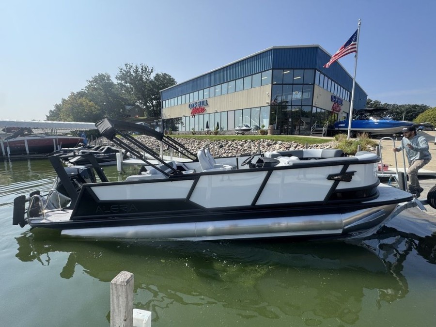 [read more]The Alera M‑Model is a premium tritour pontoon designed for both speed and space. Its three‑pontoon layout gives exceptional stability while the wide deck supplies plenty of room for seating, storage, or simply moving around.
