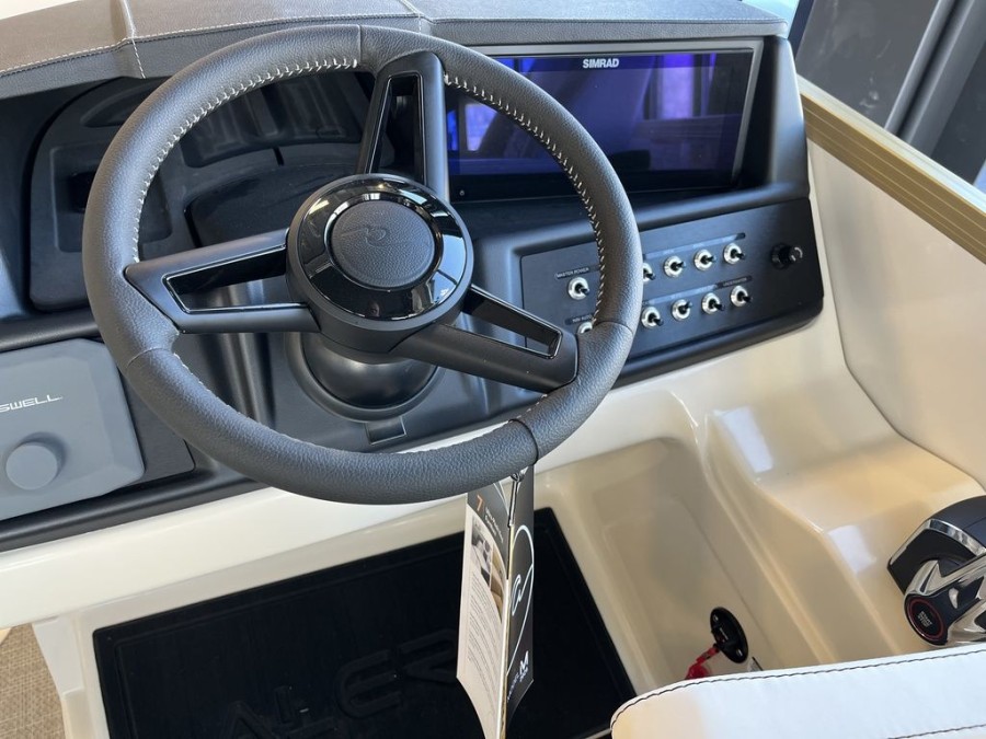 Its wide deck layout creates plenty of room for seating, storage, and easy movement—ideal for social gatherings, watersports or relaxed cruises. Powered by a robust Mercury Verado engine, the Model M offers quick acceleration, reliable towing capability and smooth handling in all conditions.