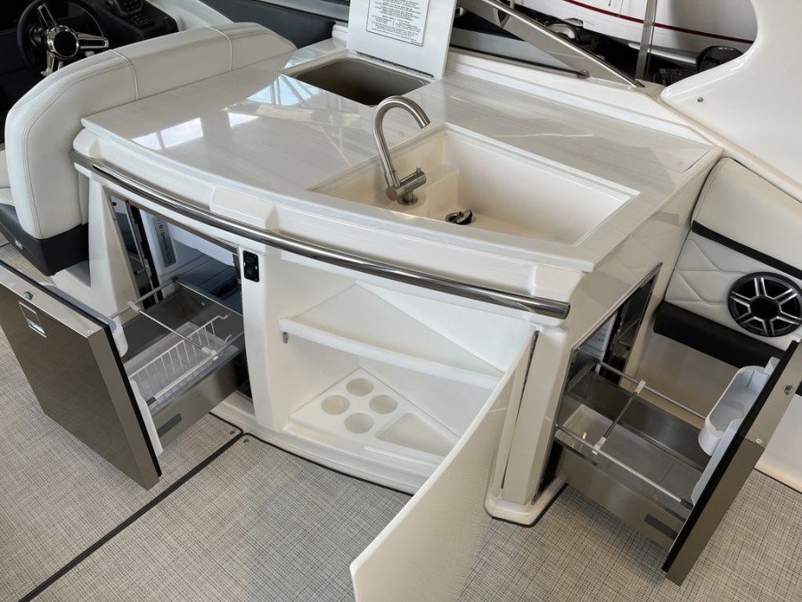 Discover the ultimate day‑yacht experience with the Regal 3300. This versatile luxury cruiser is designed to meet every boater’s expectations, offering a spacious layout that comfortably hosts up to eighteen guests while providing ample room for entertainment.
